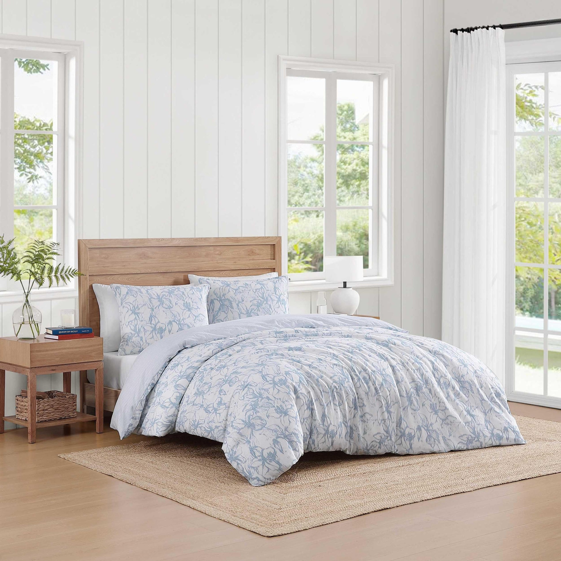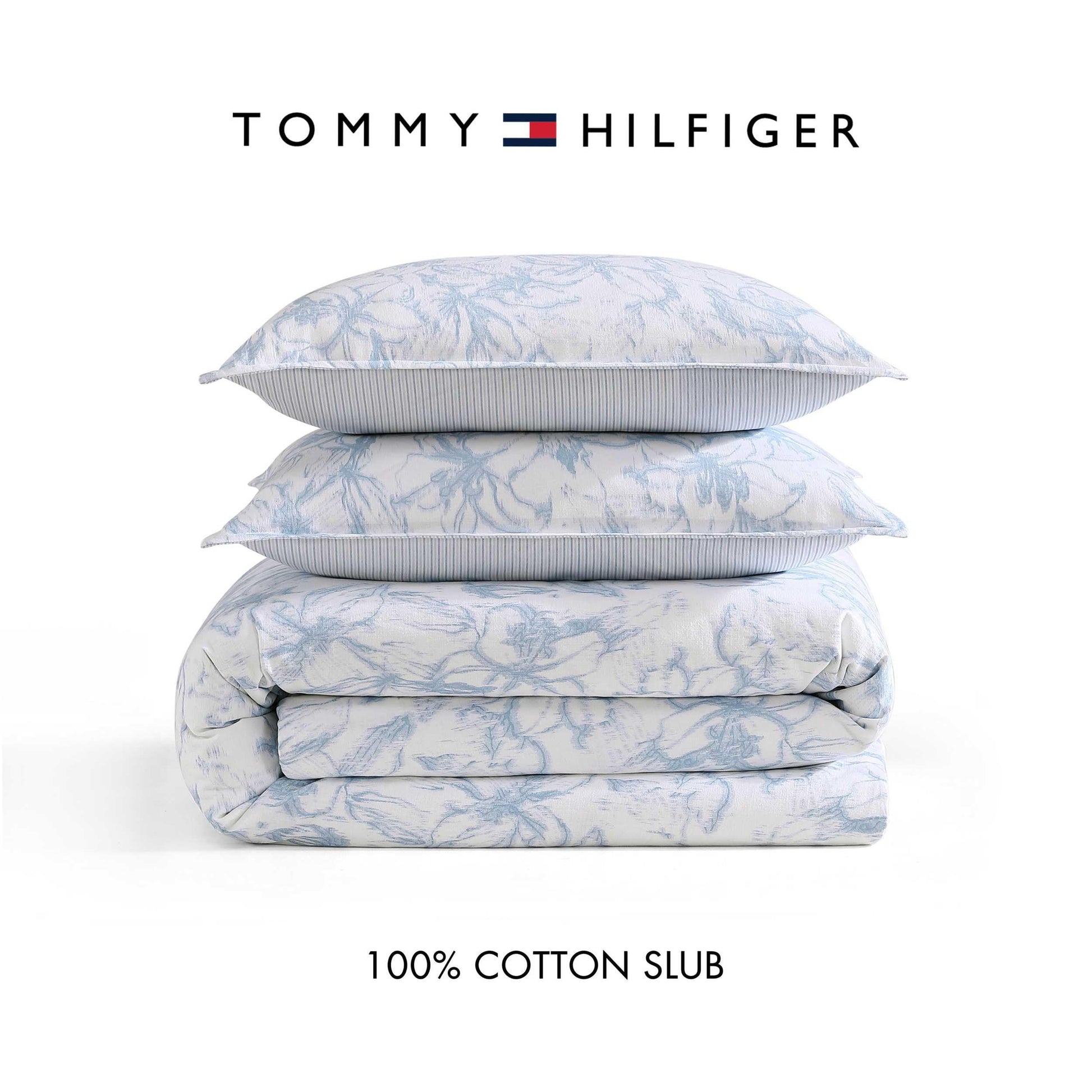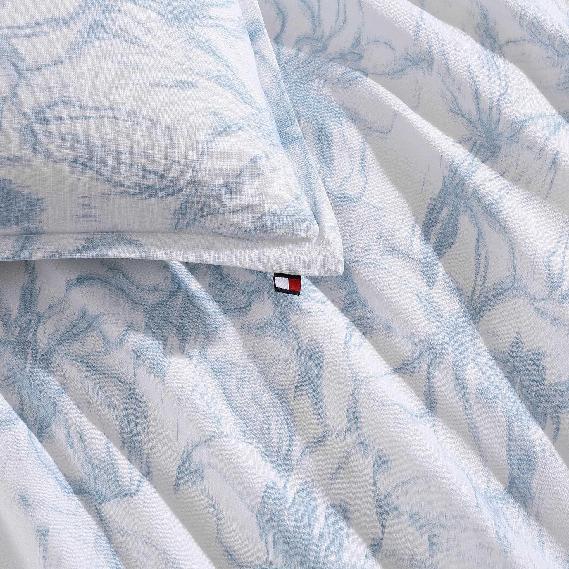 Ethereal Floral Blue Comforter Set - Soft Cotton Slub Bedding with Shams, Full/Queen