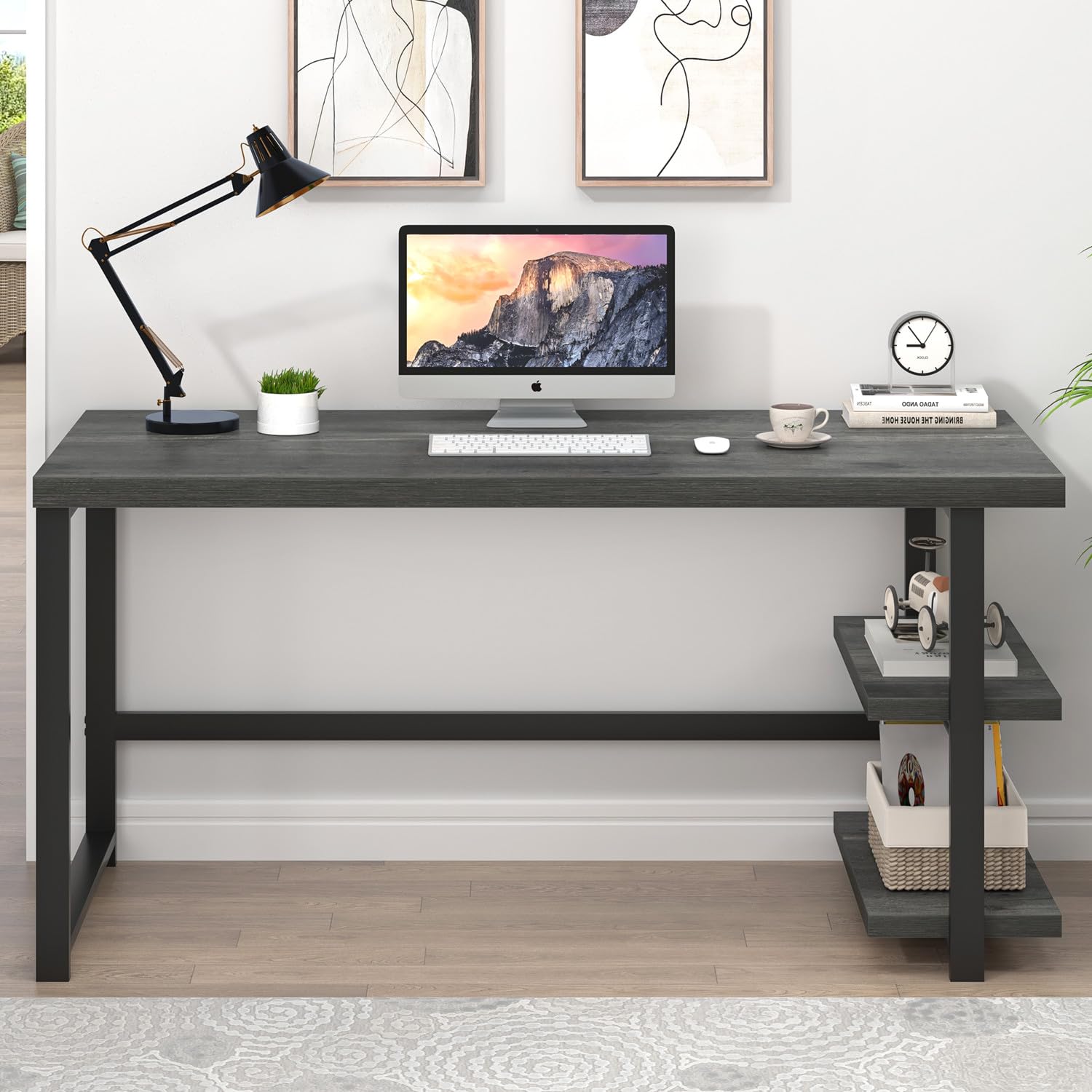 - Flexible Design: The grey study desk includes 2 adjustable shelves under the desktop, which can be installed on either side. Versatile design offers extra storage for books, files or decor, making it a functional and stylish addition to any workspace