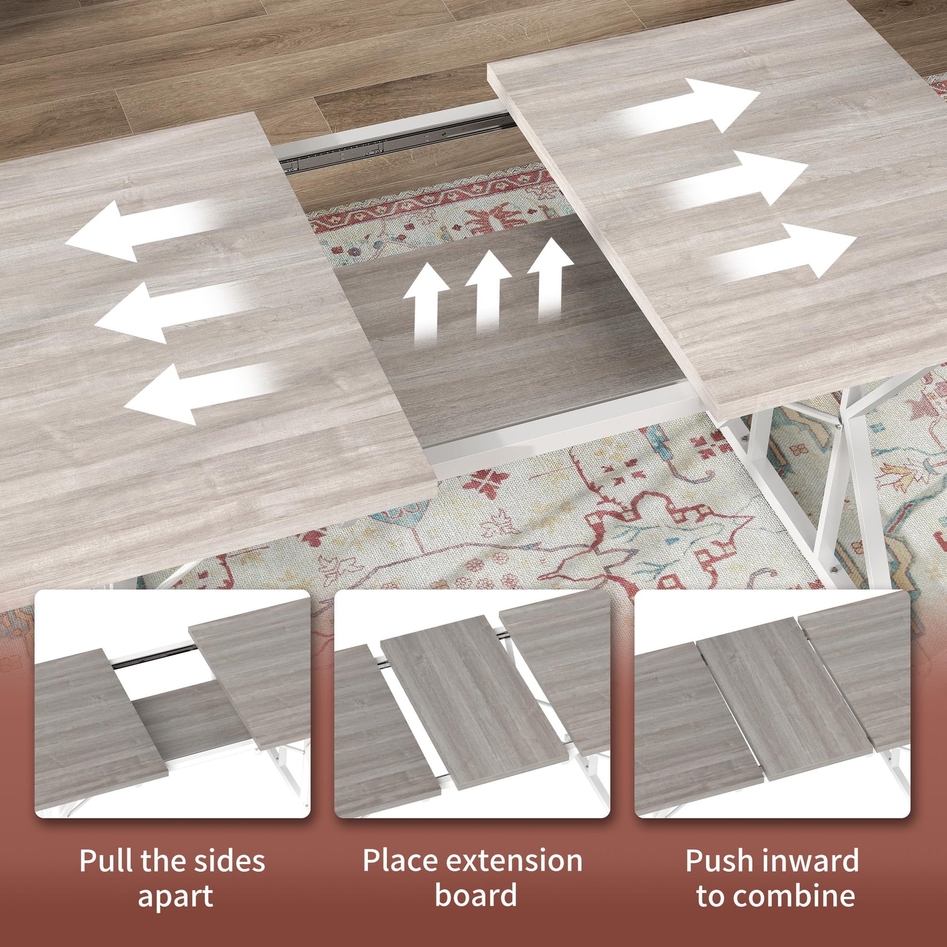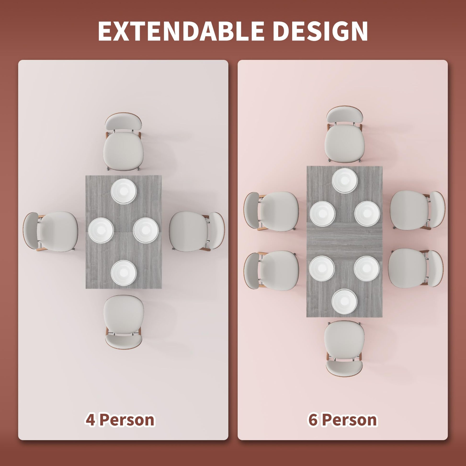 47-63 Inch Expandable Dining Table for 4-6 People - Distressed Gray