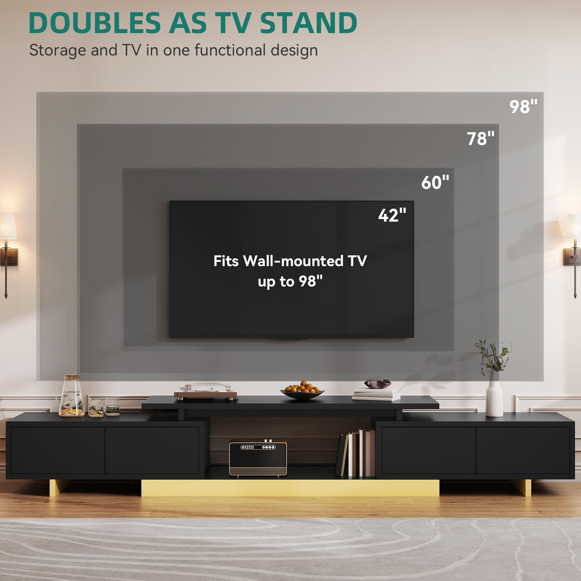 Extendable TV Stand 63-89 Inches with Storage Cabinets - Black