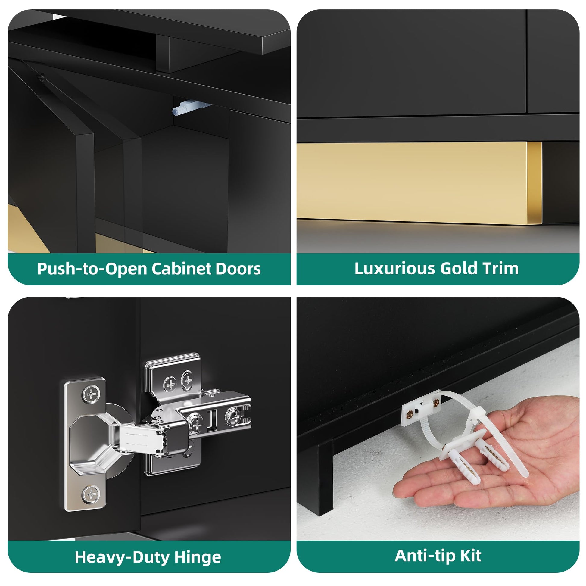 The durable black finish resists wear and adds a sophisticated touch that pairs beautifully with modern, industrial, or transitional interiors. Built to support your TV and media equipment reliably for years to come.