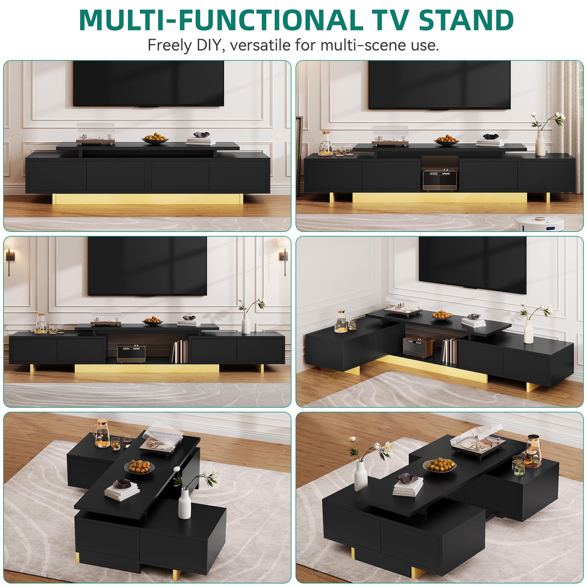 Transform your living space with this versatile TV console that adapts to your needs. Featuring an adjustable length design that extends from 63 to 89 inches, this entertainment center accommodates various TV sizes and room configurations while maintaining a sleek, contemporary aesthetic.