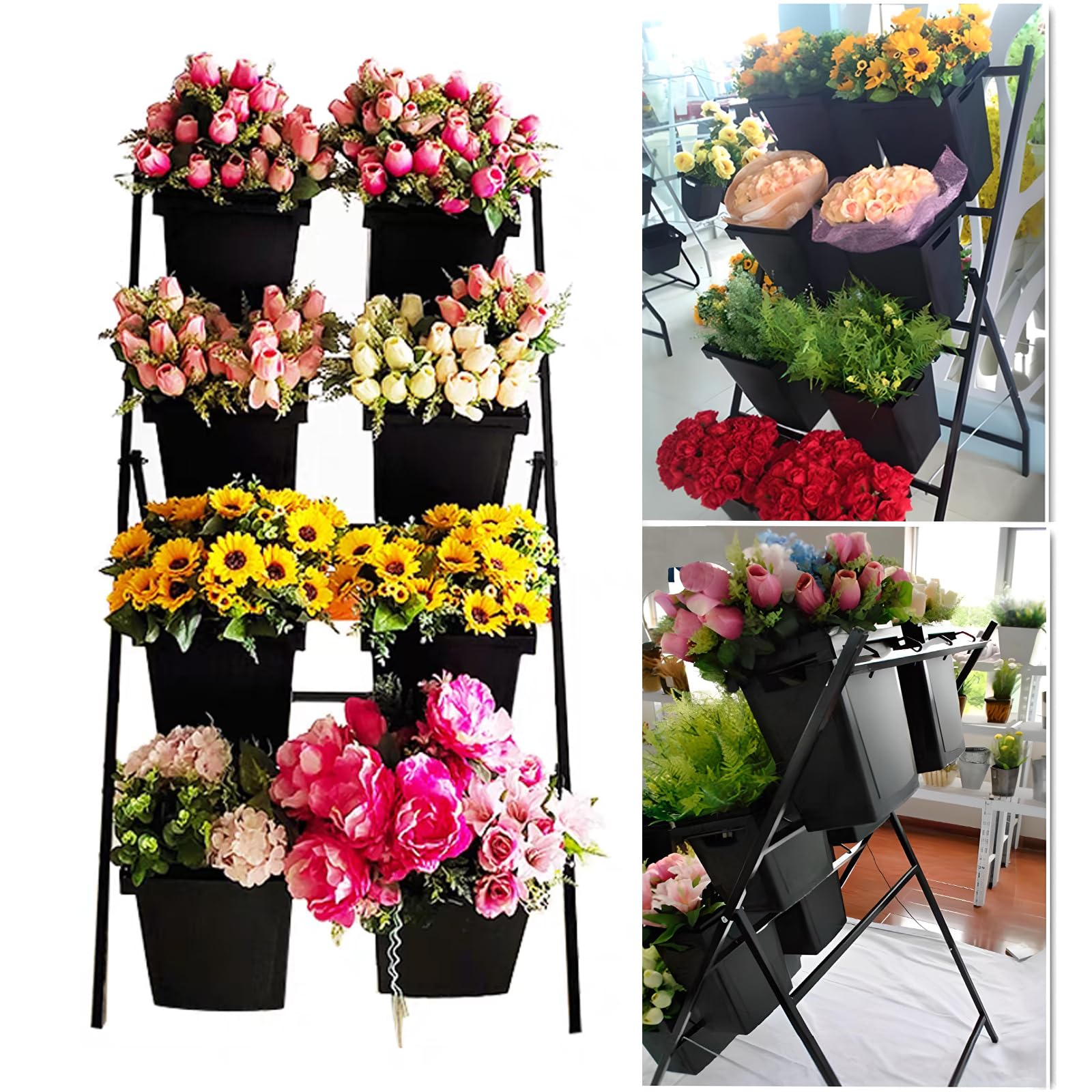 Extra large Flower Display Stand with 8 Bucket, Metal Plant Stand with Foldable Frame