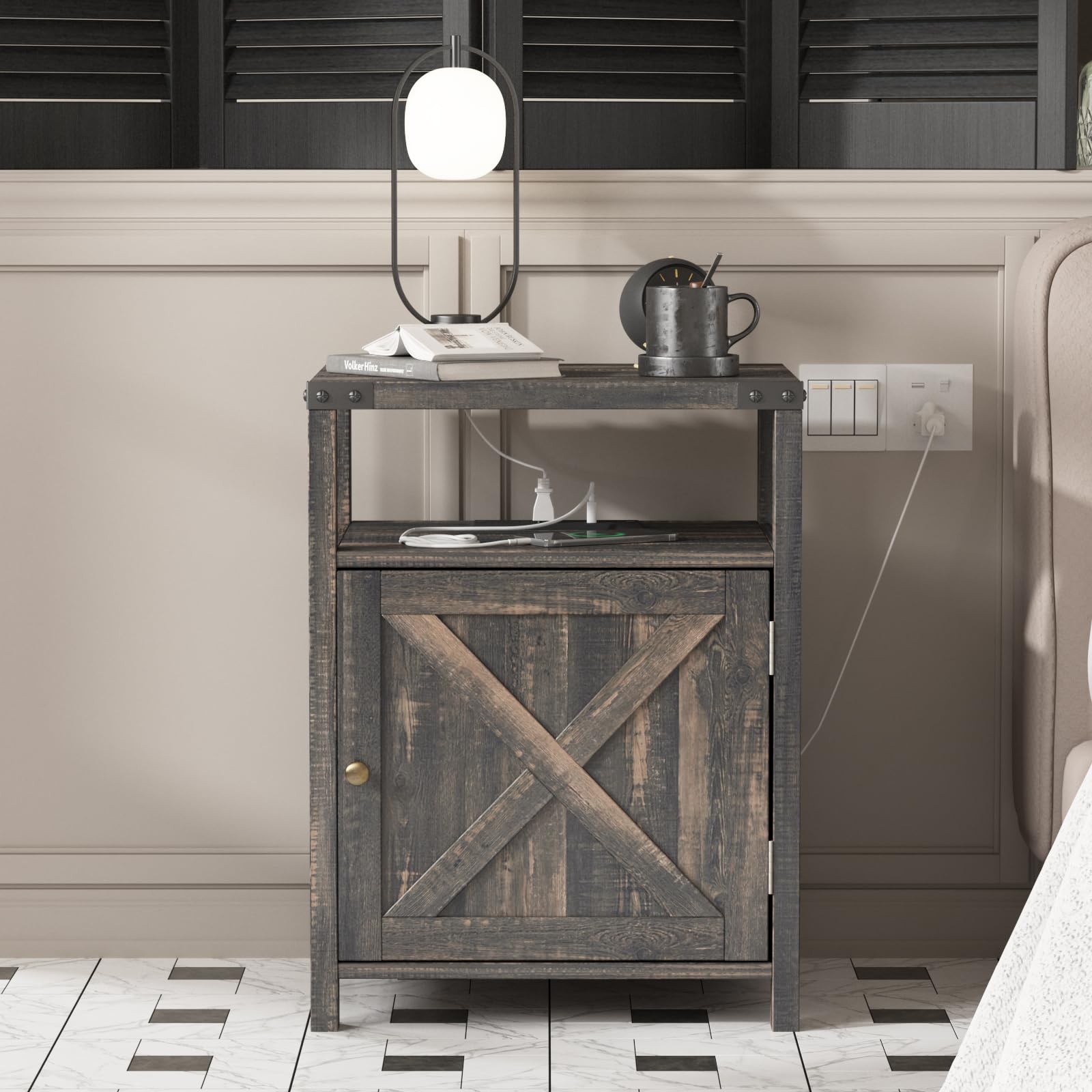- Featuring open compartments and barn doors, this farmhouse bedside table has ample storage space and can be used as a lamp table or chair in the living room or as a side table next to the sofa, not only to store your books, CDs, magazines, towels, Keep toys, and other items dust-proof while also adding a charming, rustic touch to your bedroom, living room, or studio.