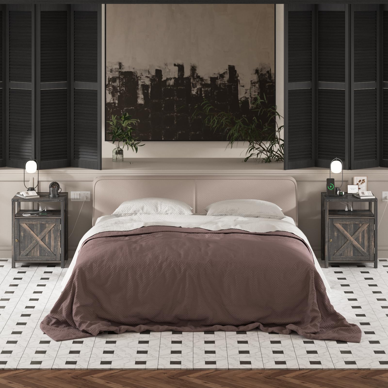 Nightstands Set of 2, Night Stand with Charging Station, Bed Side Table with Storage