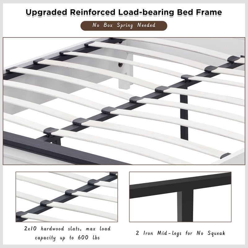 Designed for durability and peace of mind, the reinforced construction ensures years of squeak-free sleep. The antique white finish brings warmth and versatility, seamlessly integrating with farmhouse, coastal, or transitional bedroom styles.