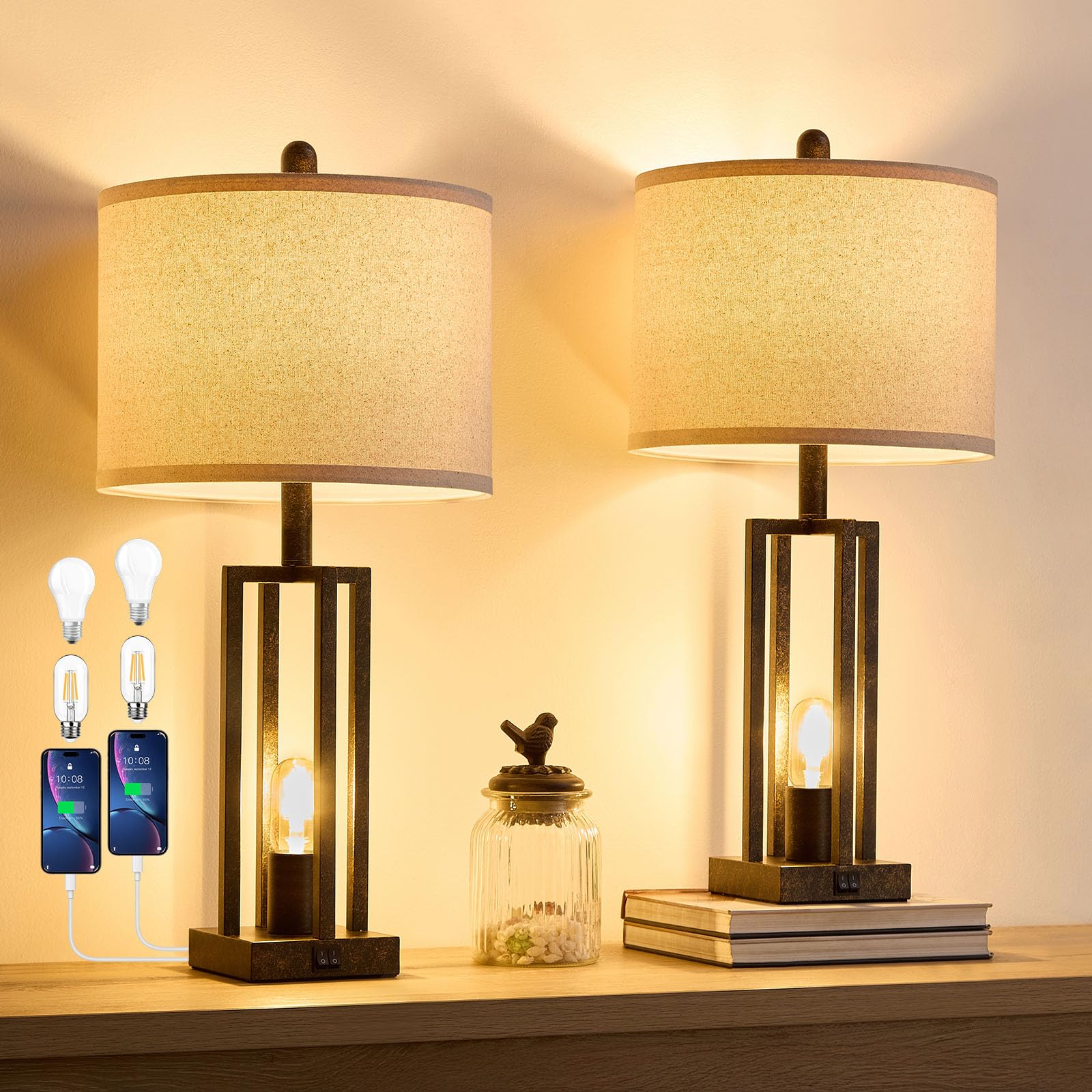 Transform your bedroom or living room with these elegant farmhouse-style table lamps that seamlessly blend classic design with modern functionality. This set of two bedside lamps features integrated charging ports and customizable lighting to meet all your needs.