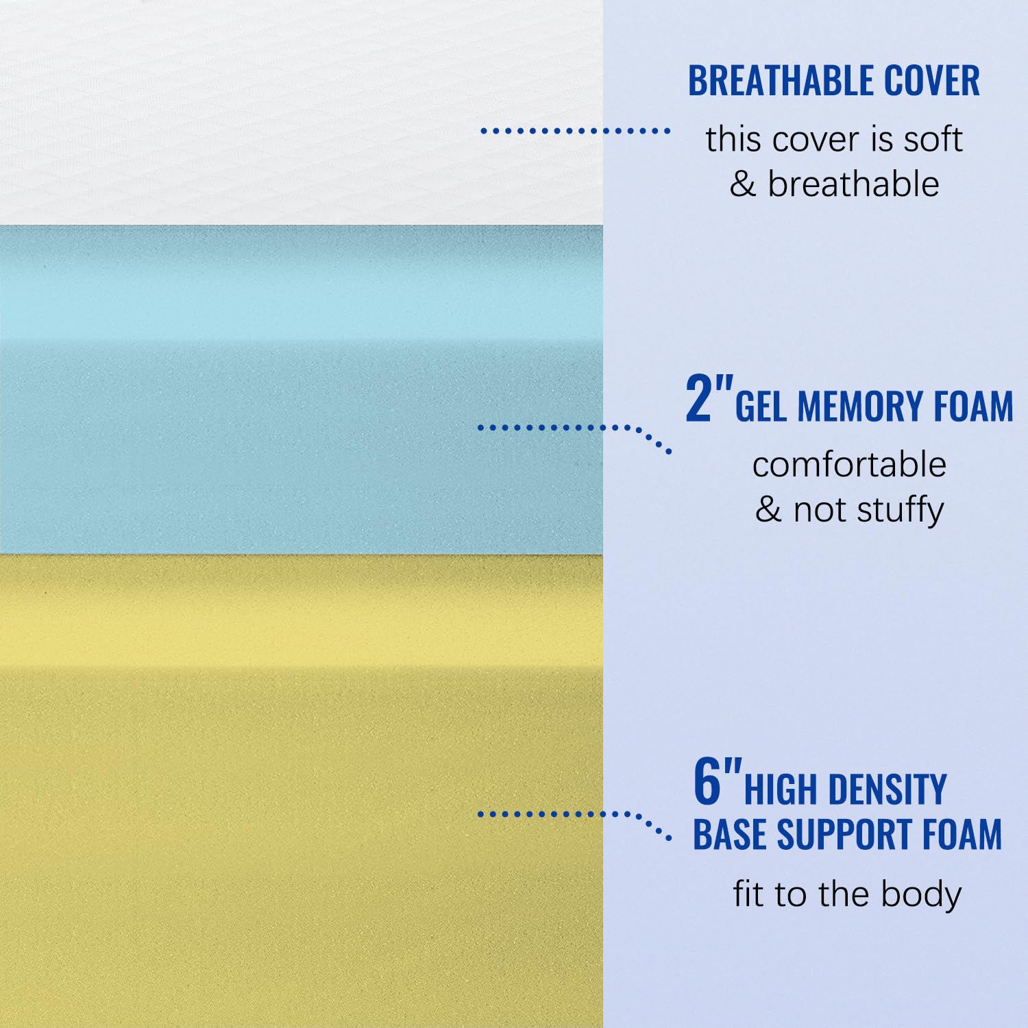 8 inch Twin Mattress Gel Memory Foam Mattress for Cool Sleep & Pressure Relief