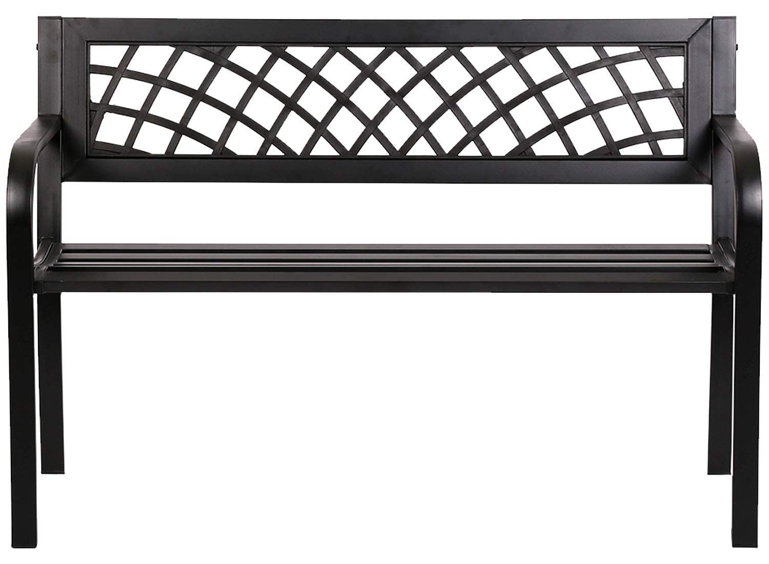 - Excellent Design & Perfect Size The lively and exquisite grid embellishments of the Garden Bench are distributed on backrest fashionable plastic backrest and make whole Metal Bench look beautiful. Not only does the Yard Bench offer comfortable sitting experience but also serve as a good decorative ornament. And the garden bench size perfect for two adults .Garden Bench Patio Bench Yard Bench Park Bench Metal Bench outdoor benches clearance.