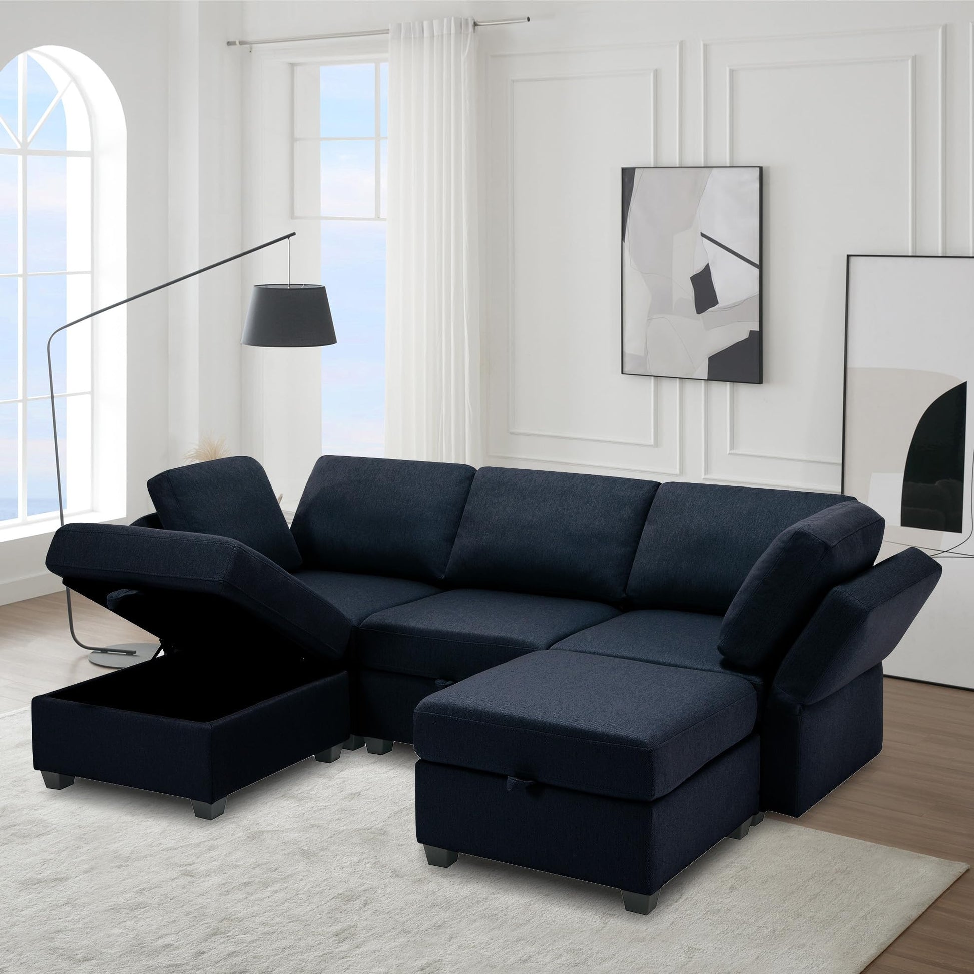 5 Seat Modern U Shaped Sofa with Convertible Storage Chaise, Sectional