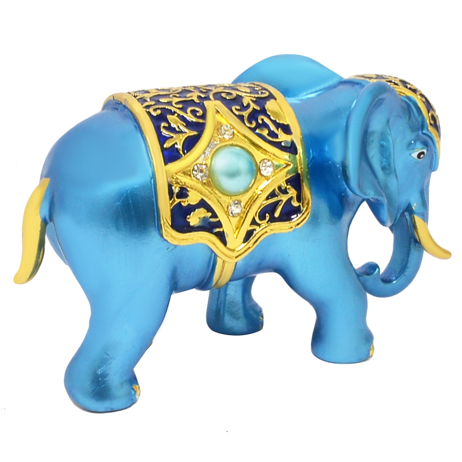 Blue Lucky Elephant Good Fortune Protection Home Statue Office Decor Figurine (Blue)