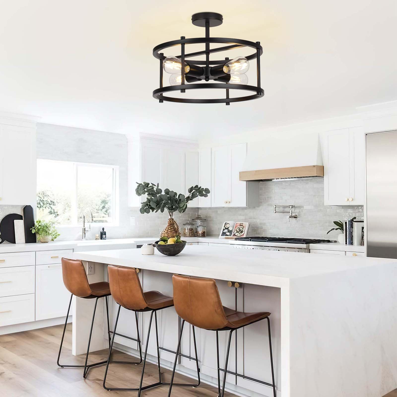 16" Semi Flush Mount 4-Light Industrial Ceiling Light, Black Chandelier