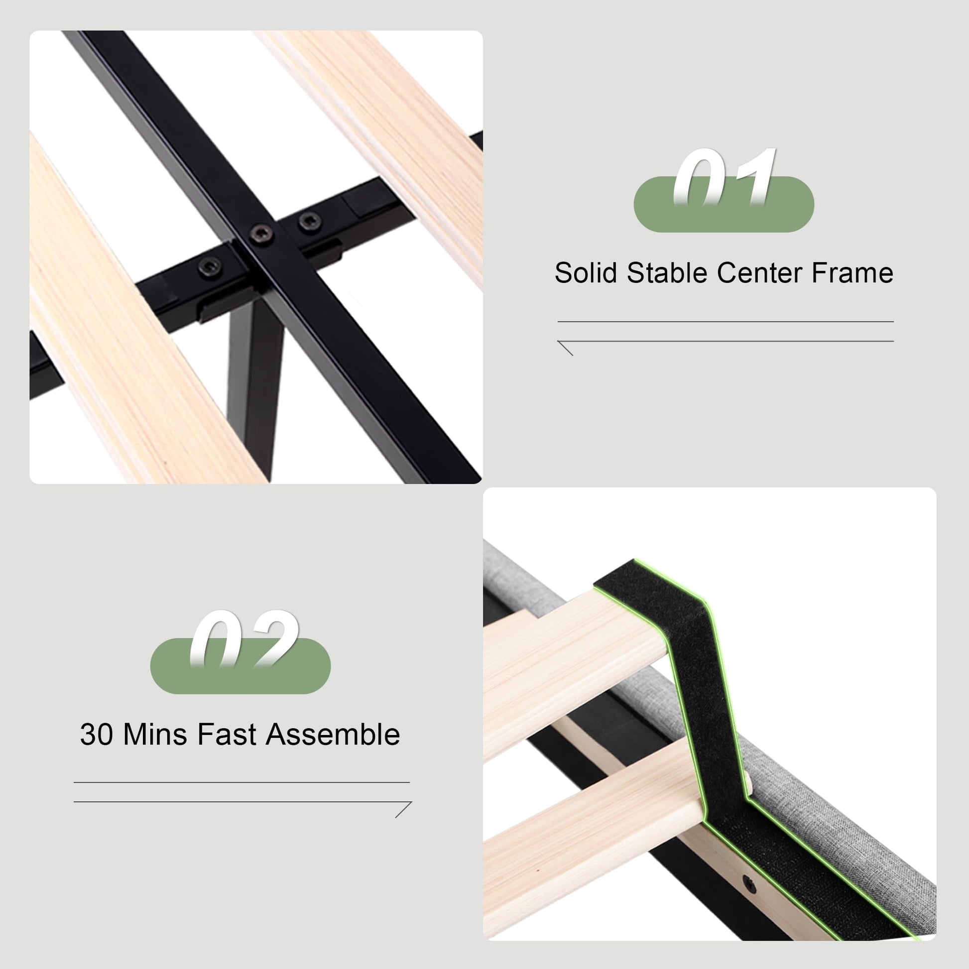 Full Size Bed Frame with Charging Station, Upholstered Platform Bed Frame