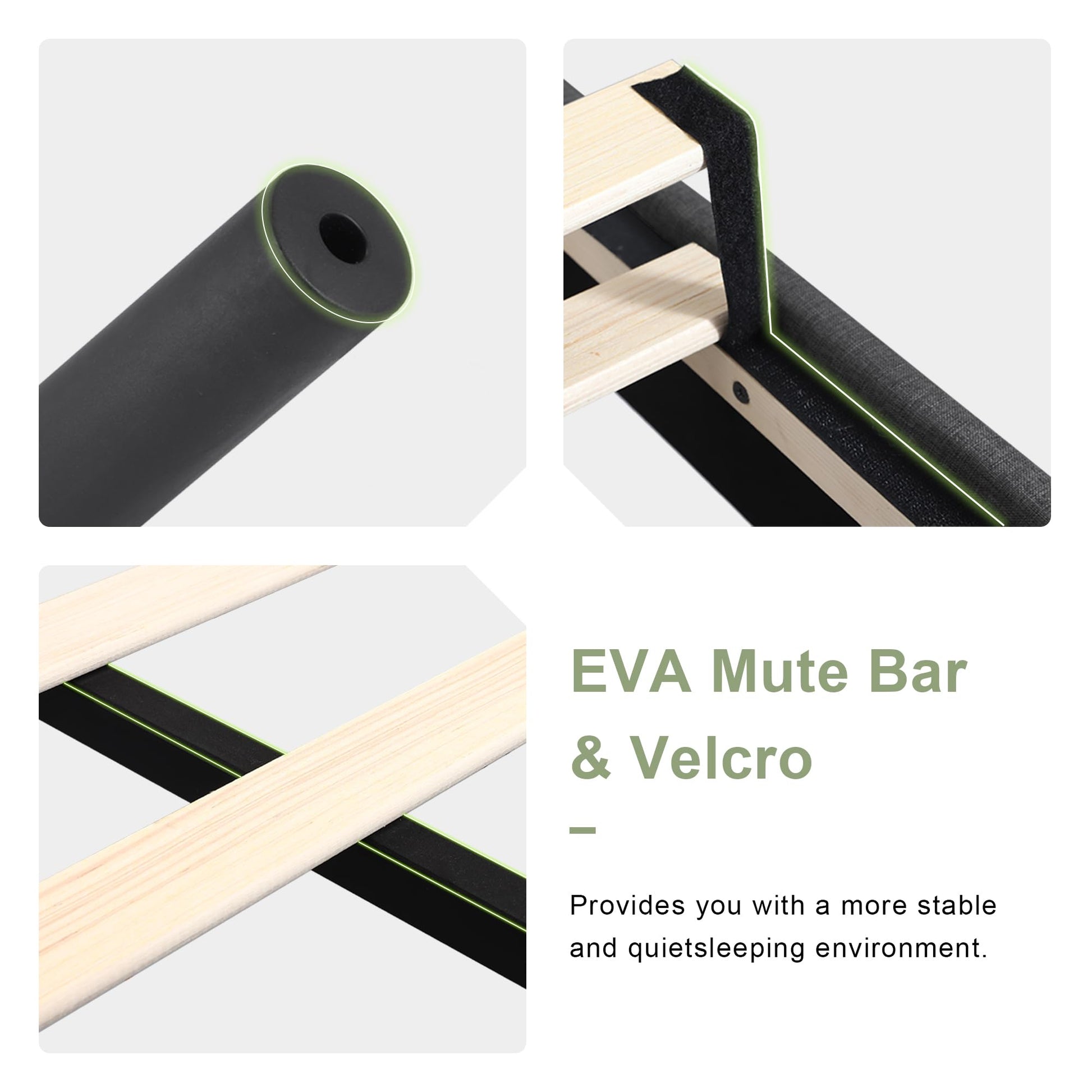 - Noise Free: Evenly spaced velcroed slats, stable leg pads and EVA foam bar. Make sure you and your family have sweet sleeping night and relaxing time