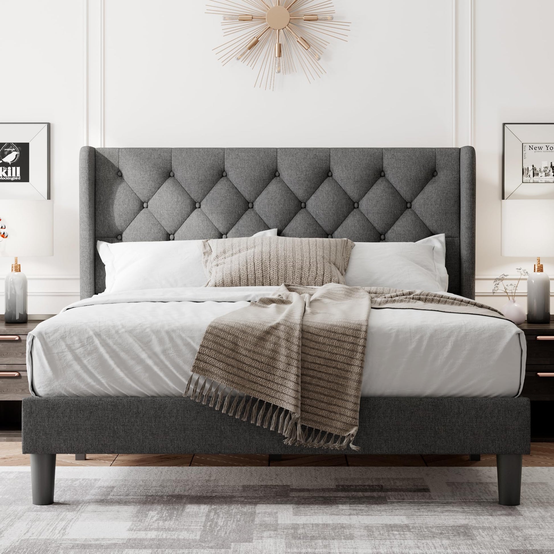 - Elegant Wingback Headboard : This upholstered bed frame combines pretty wingback with classic button tufting. A linen-wrapped bed frame in classic and versatile gray creates a chic look. Easily blends into any style of rooms