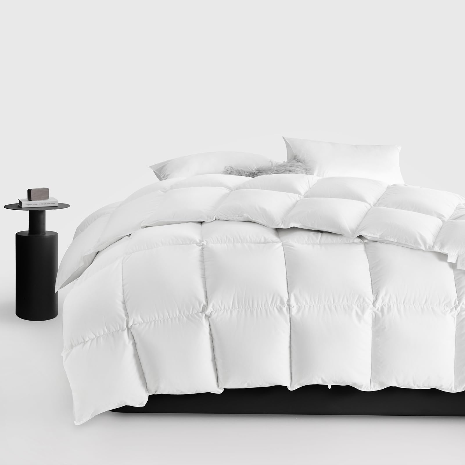 - Our down duvets are filled with carefully selected premium white goose feathers and goose down, which are light, comfortable and fluffy. It is breathable, allowing fresh air to enter and sweat to escape, so you can maintain a comfortable temperature but not too hot. Certified by the Responsible Down Standard (RDS), it has high cleanliness, no odor, good warmth and comfort.
