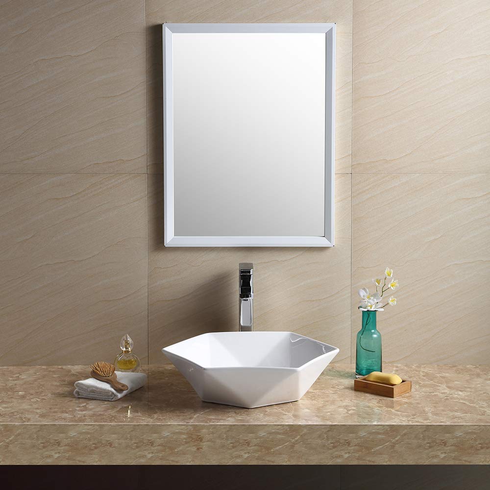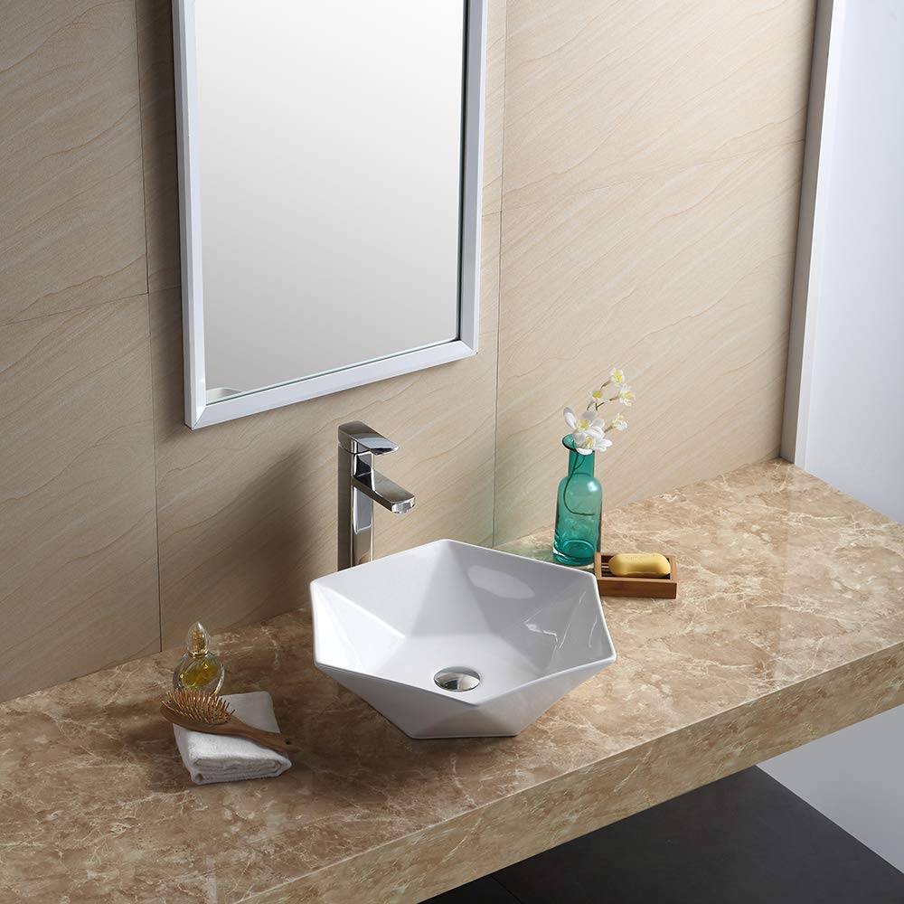 - HEAVY DUTY CONSTRUCTION- Great quality, durable vitreous china material (Ceramic) for everlasting performance. Stain and scratch-resistant. Features an elegant, sleek, contemporary design with a glossy finish. Modeled to add beauty & elegance to any bathroom or vanity décor.