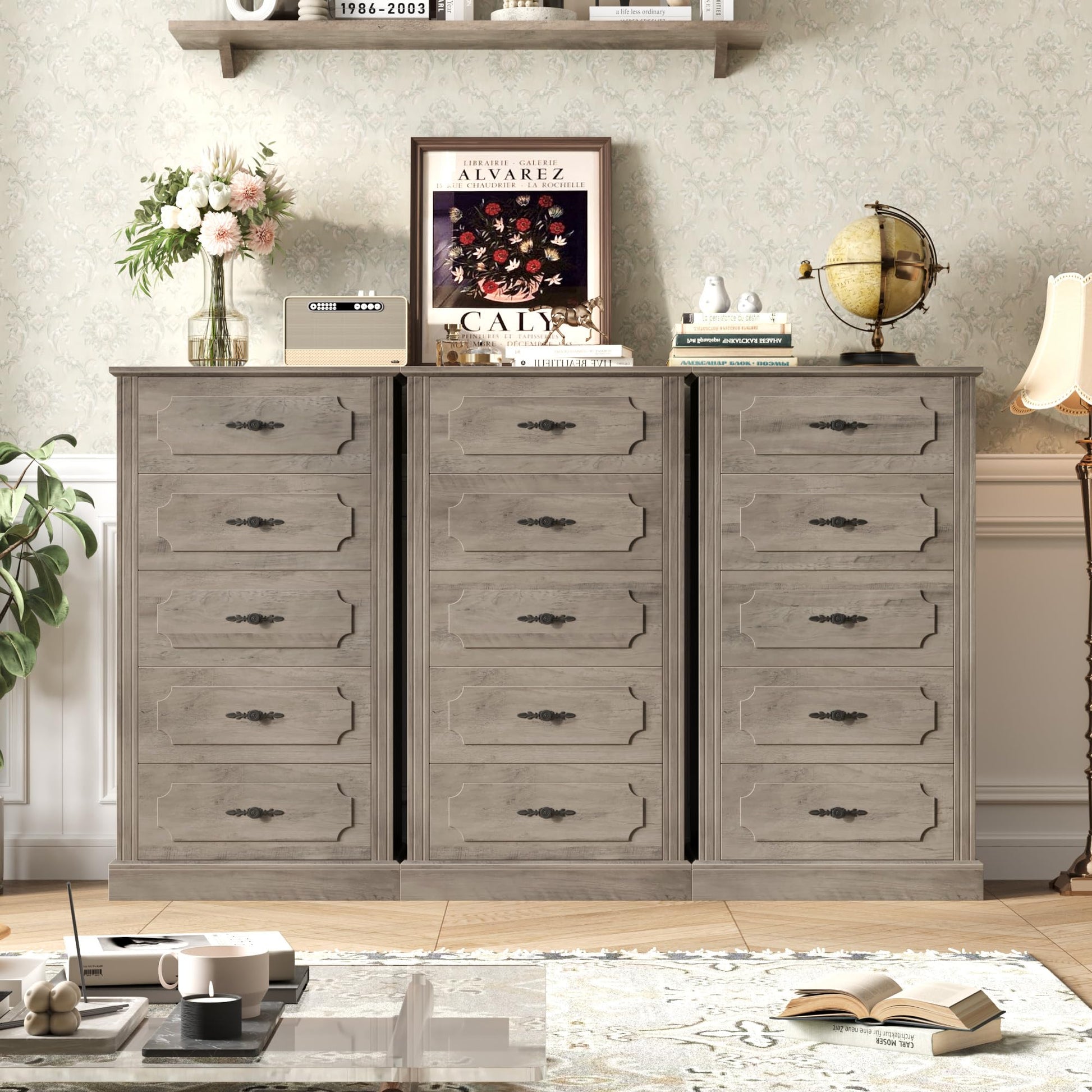 - Perfectly Sized for Your Space: With dimensions of 23.6W x 16.7D x 43H inches, the grey dresser is designed to fit beautifully into your home, striking a balance between space-saving and storage capabilities. It's also great for gracing your living room, greeting guests in the entryway, or adding convenience to your hallway.