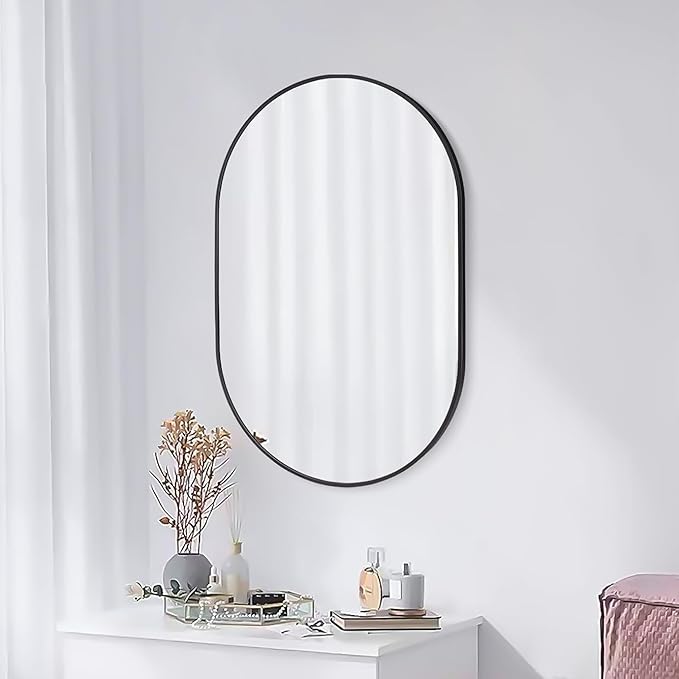 - Modern Aluminium Alloy Frame Mirror: The classic clean and circle lines of this round mirror accent any room or hallway in moden style. Featuring an ultra-thin (0.3 x 0.7 inch) metal frame in deep profile, you add depth to a room and give it more life.