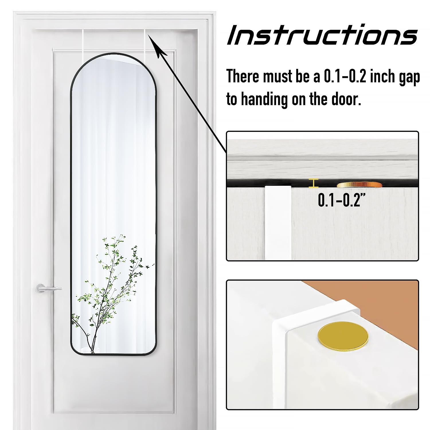 47x14 Mirror Full Body Length Door Hanging/Rope Hang/Wall Mounted Metal Frame Arch