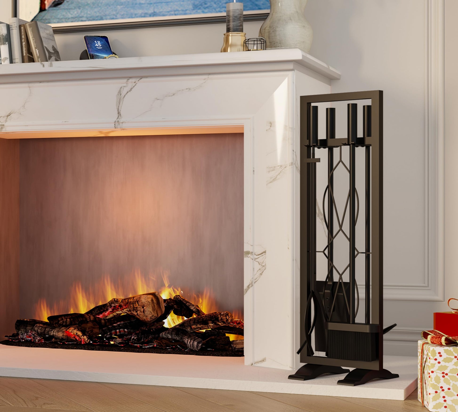 - MODERN AESTHETICS: The clean and minimalistic design with tools hanged in two sides adds that touch of modernized elegance to any fireplace.