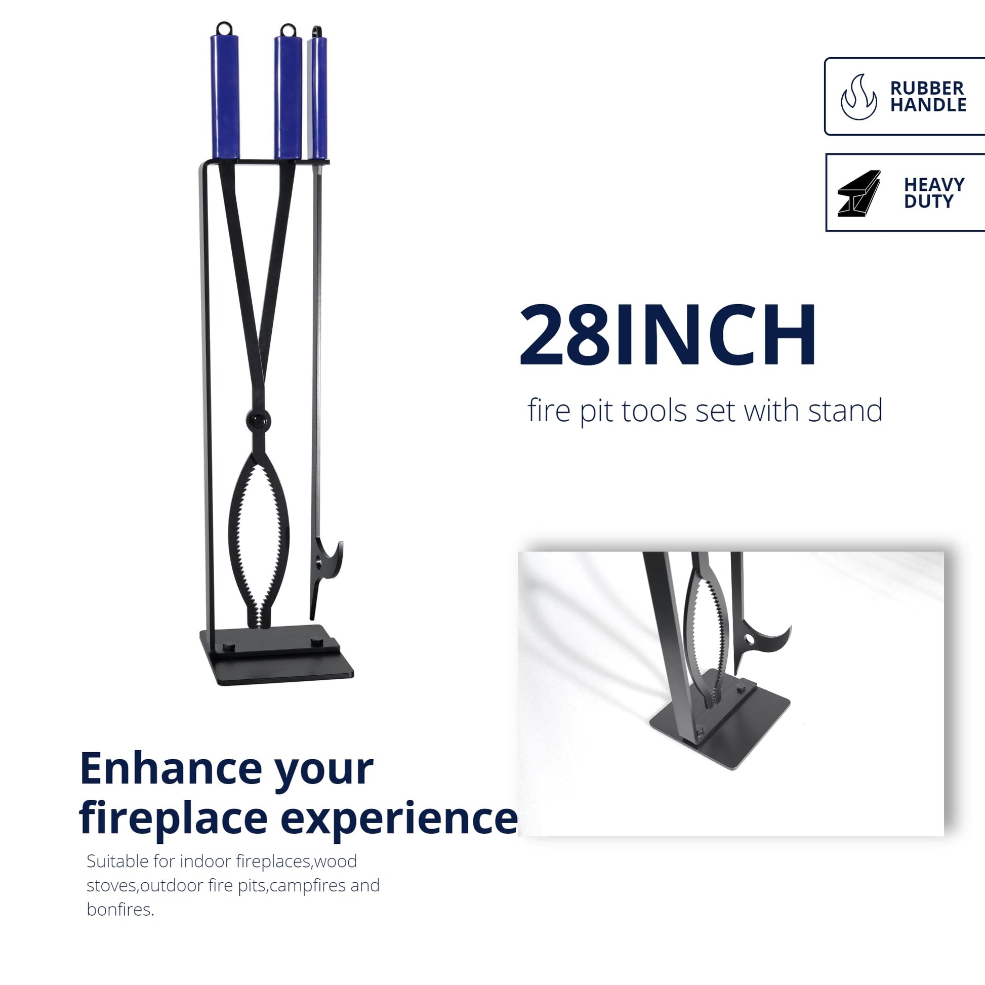 - Comfortable Rubber Handle :This outdoor fire poker and fire tongs are both 28-in long with an comfortable rubber handle. Enough heat protection as you easily grip & move hot logs or coals.