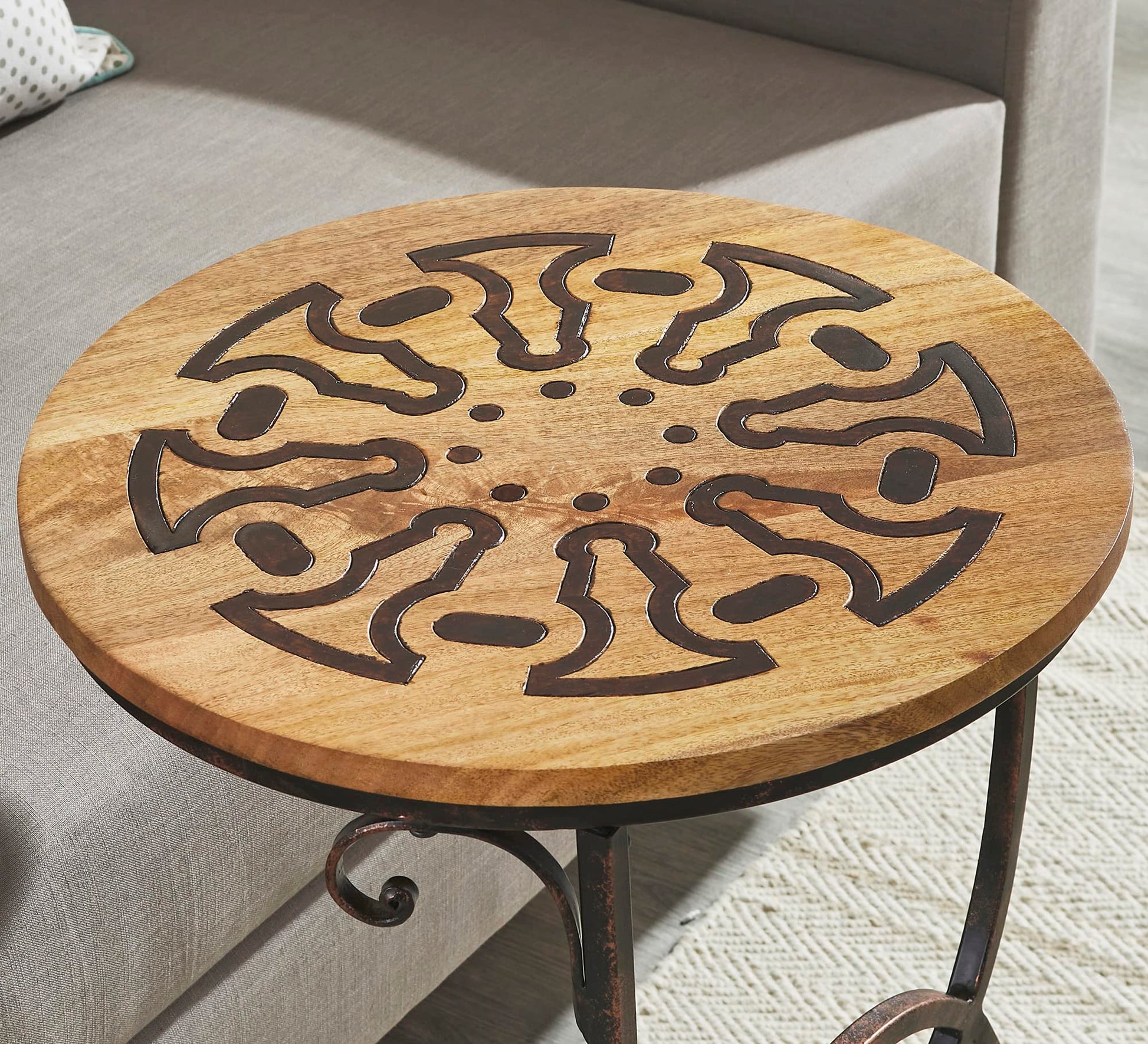 - Our round FirsTime & Co. Natural Jace Inlay Round C Side Table has a stained natural finish and is made of mango wood