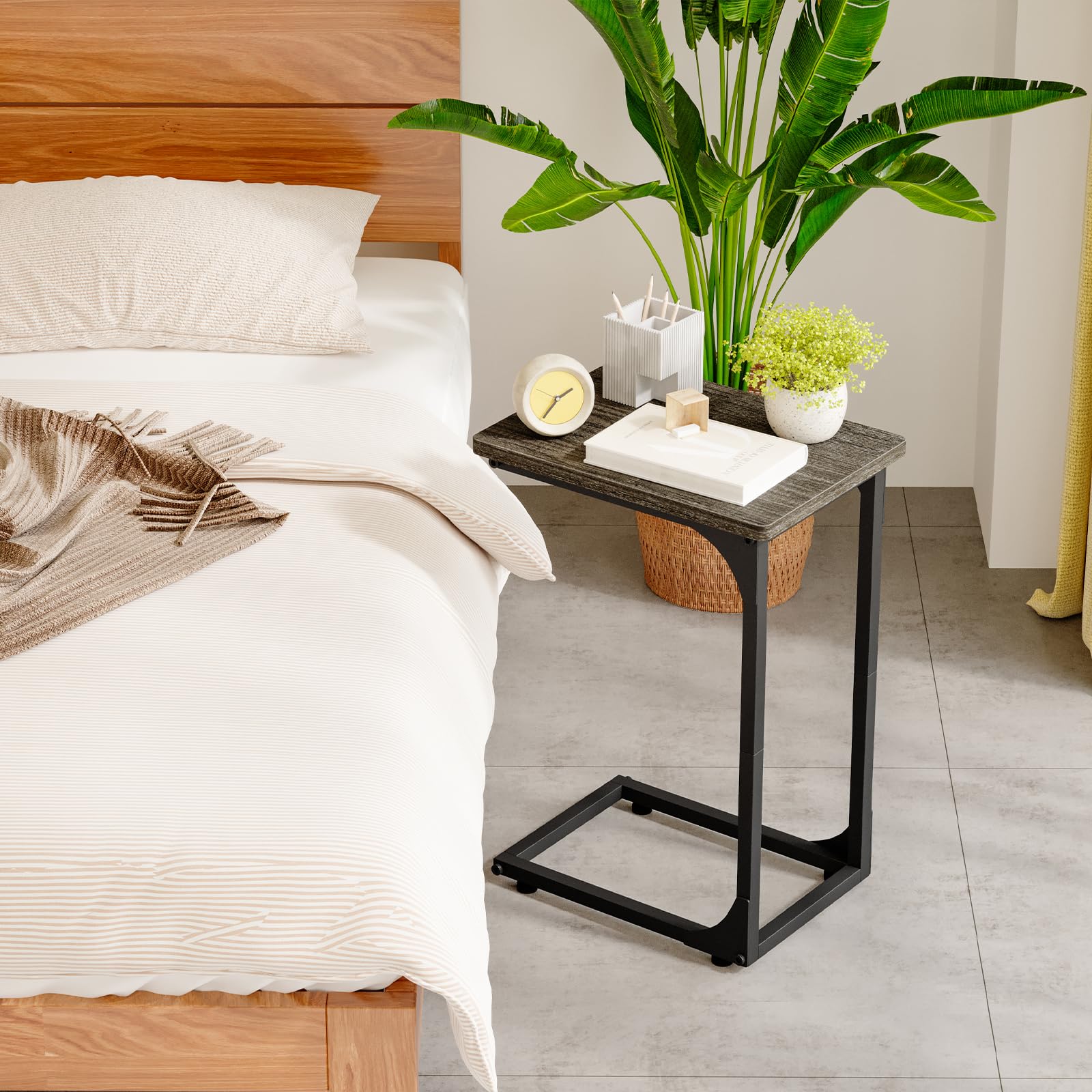 C Table, C Shaped Side Table with Adjustable Feet for Couch, Sofa Table for Living Room