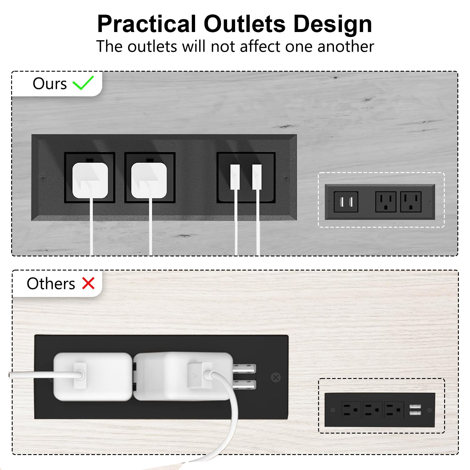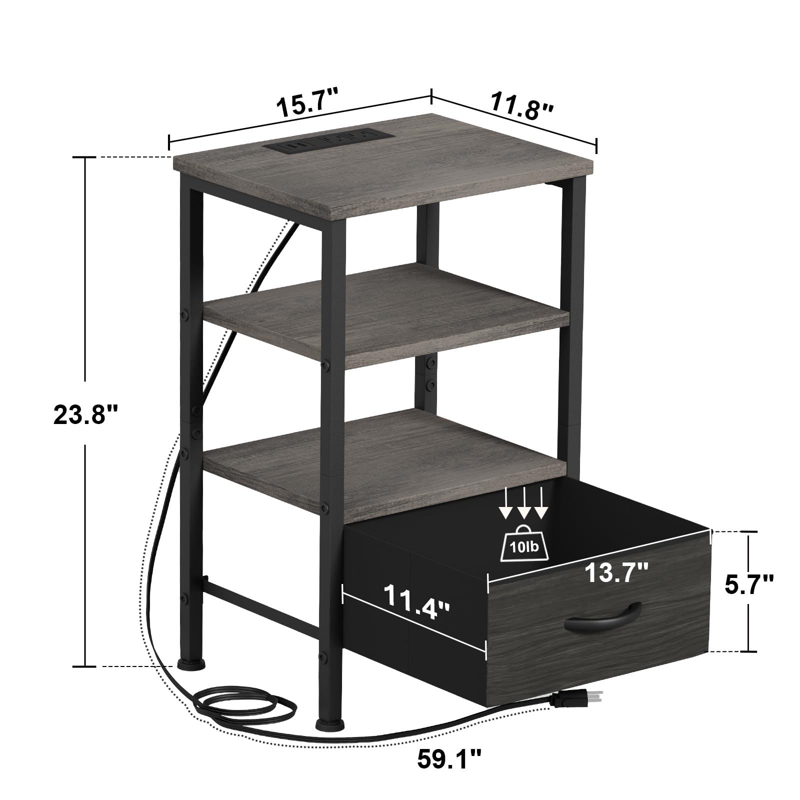 - This night stand with charger station comes with 2 standard AC outlets and 2 USB ports, allowing you to use fully charged devices every morning when you wake up. The 4.92 feet long power cord is very convenient to use as bedroom nightstands or end tables living room.