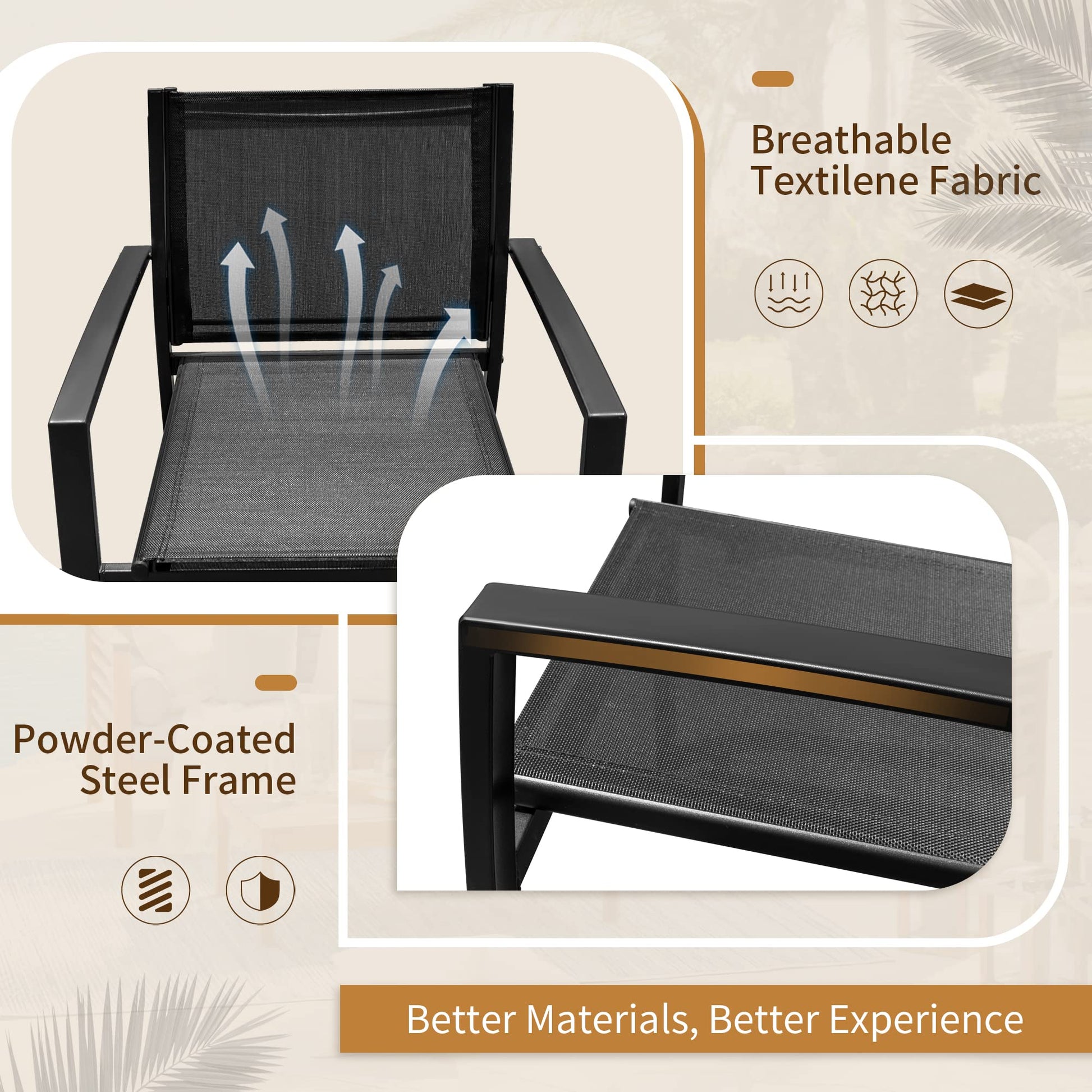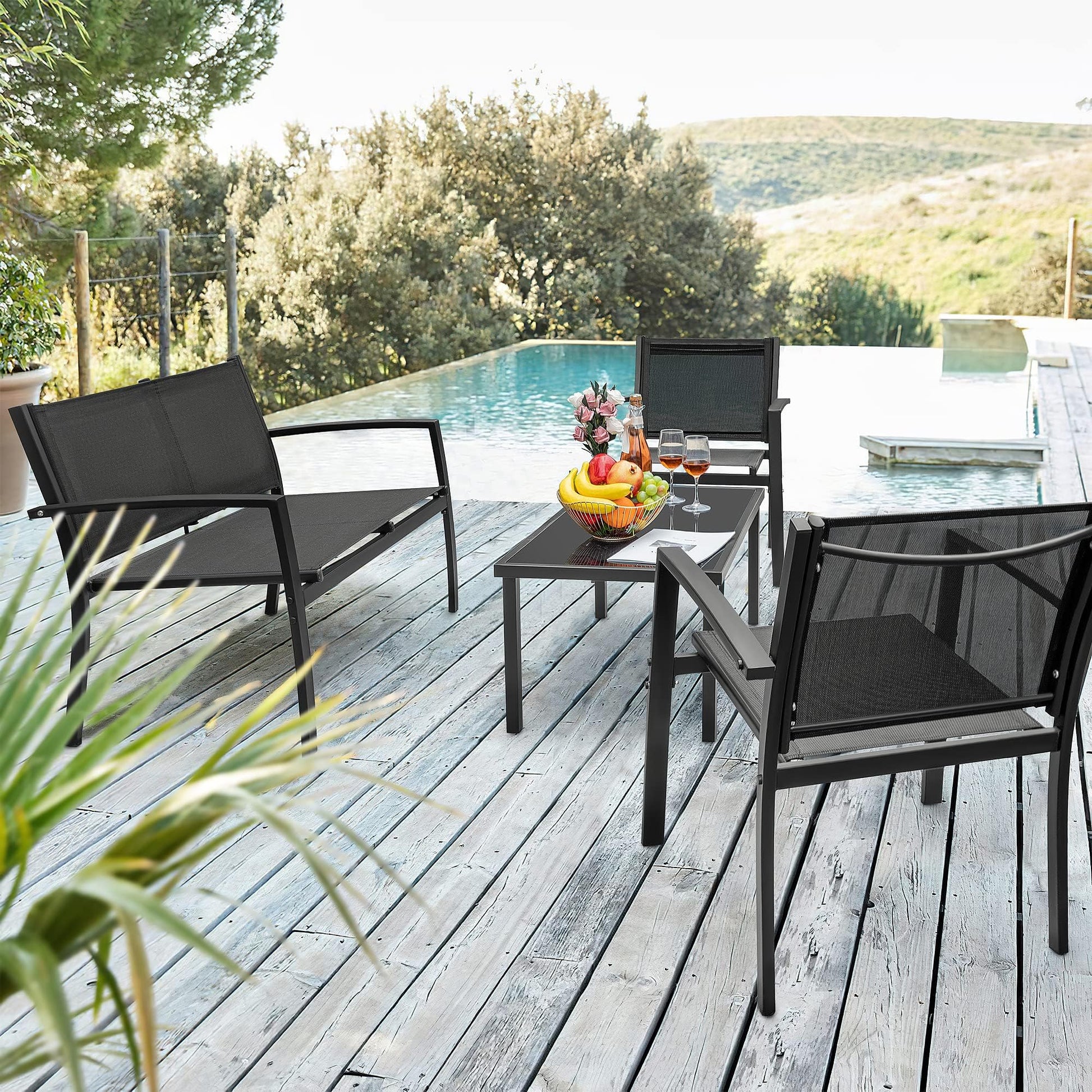 4 Pieces Outdoor Patio Furniture Textilene Modern Conversation Black Bistro Set