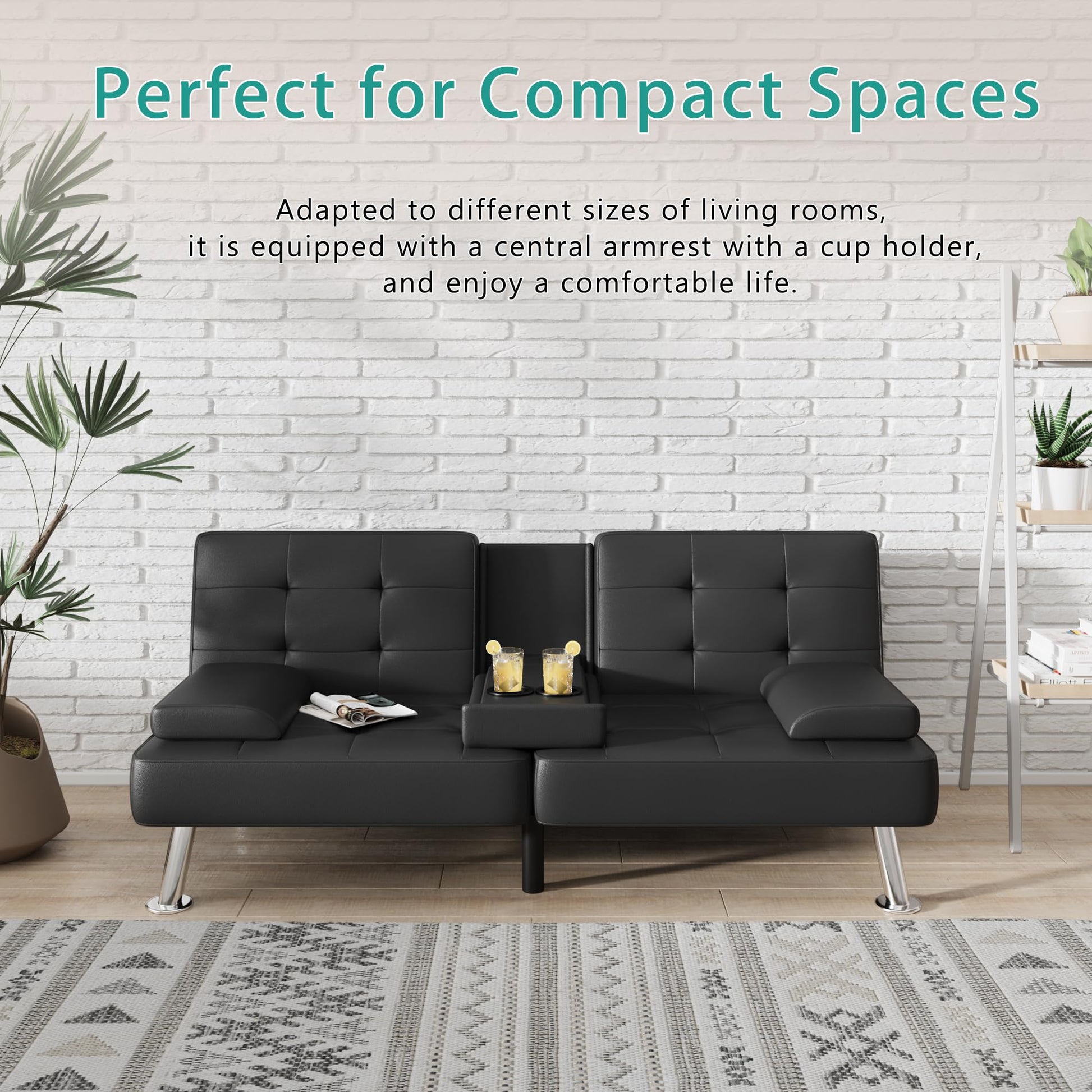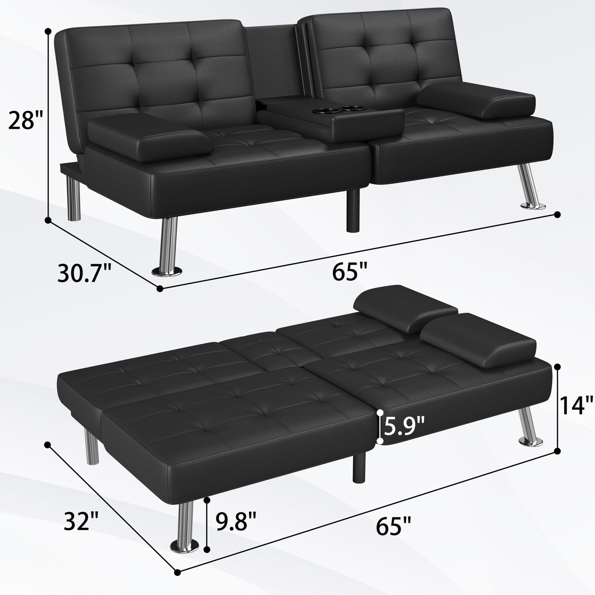 - HIGH-QUALITY MATERIAL: Our futon sofa is made of smooth and selective PU leather, which is skin friendly and durable in use. The chrome metal legs help increase much stability that can hold up to 500 lbs.