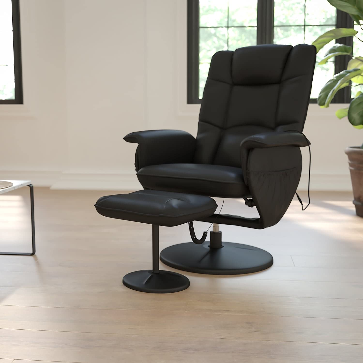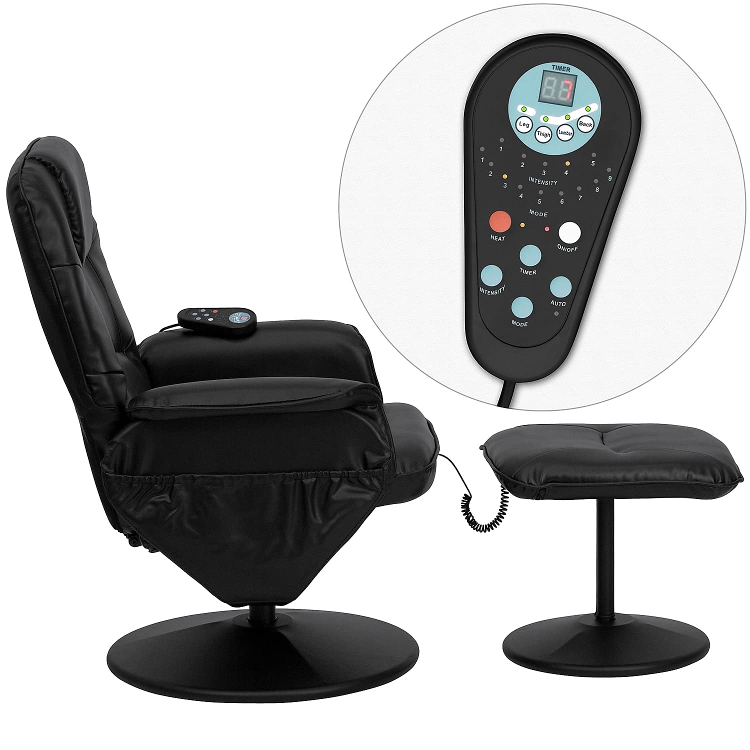 - Work on relieving your stress and cramped muscles with this adjustable massaging recliner and ottoman set. Heat, 9 massage modes and 5 intensity levels; This product cannot ship to Canada