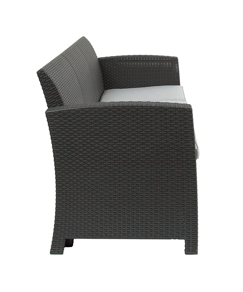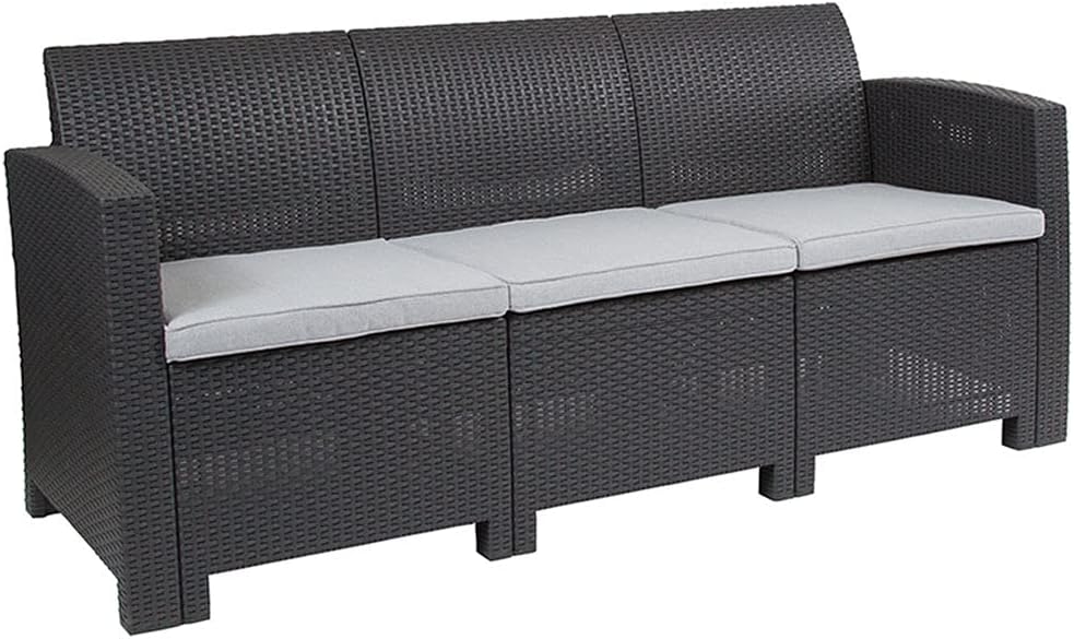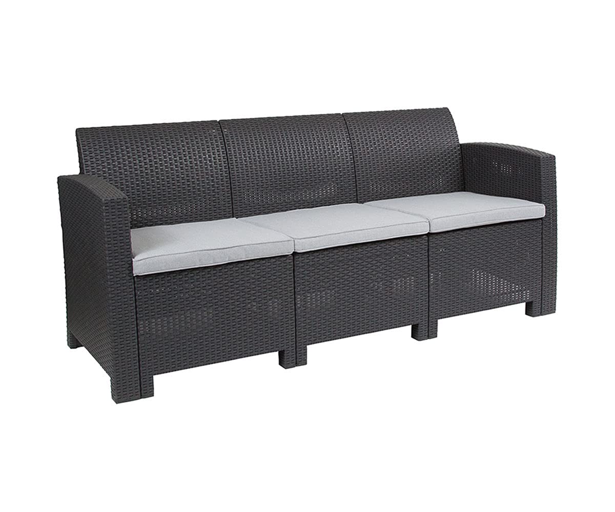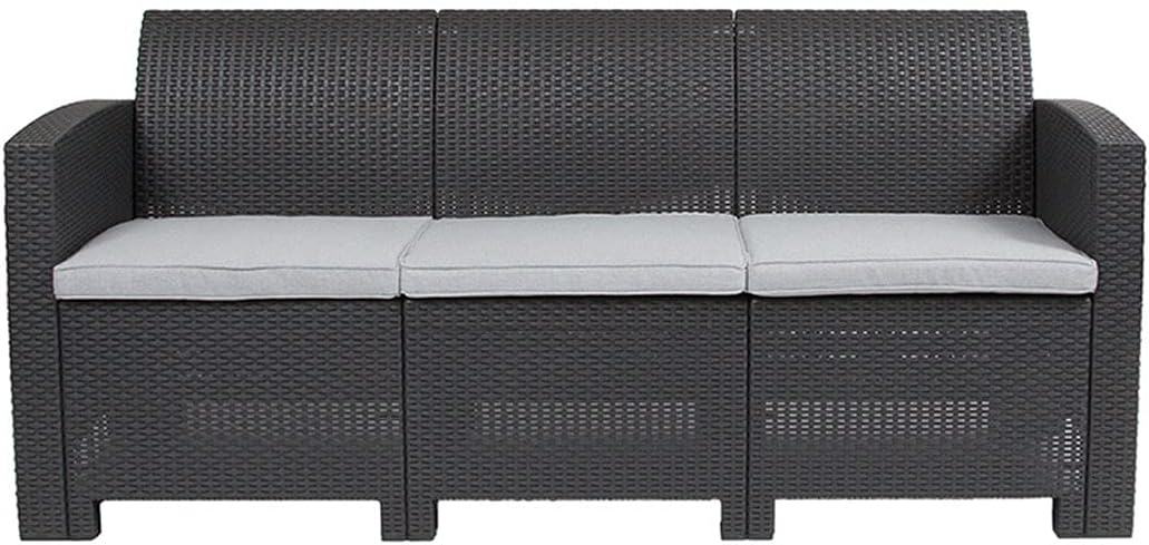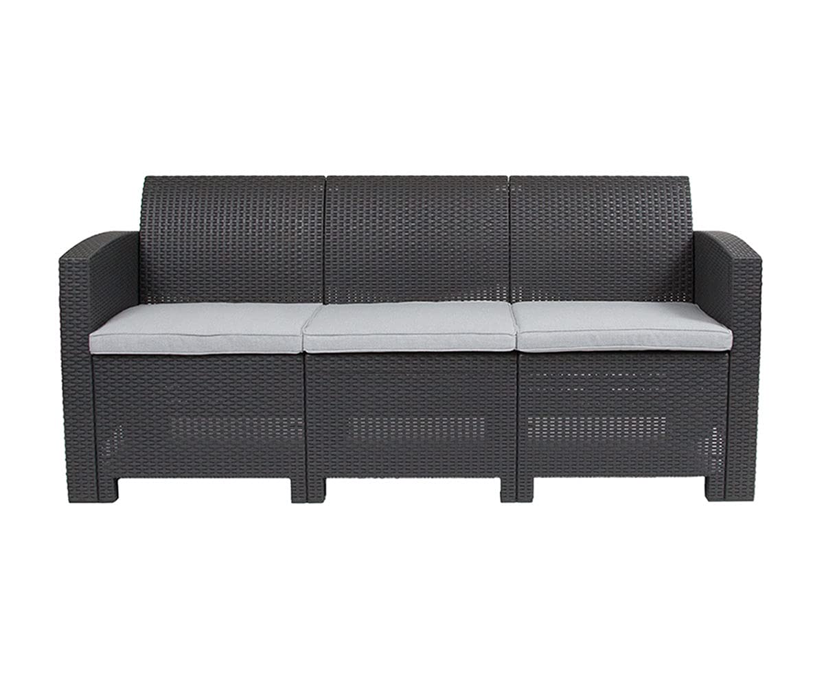 Seneca Dark Gray Faux Rattan Sofa with All-Weather Seneca Light Gray Cushions