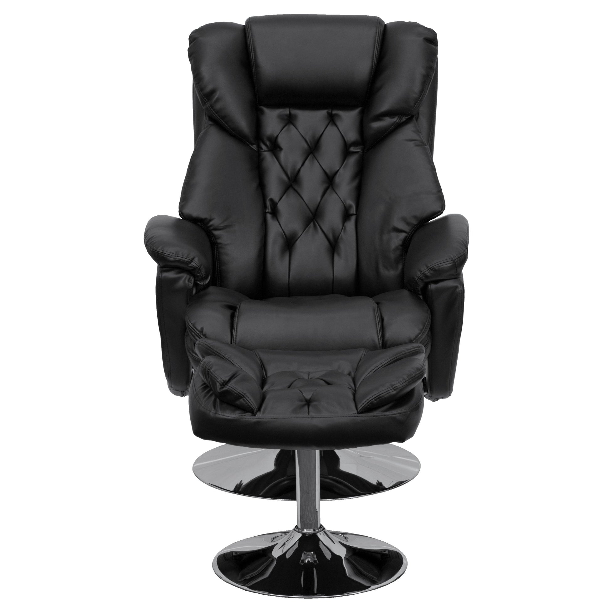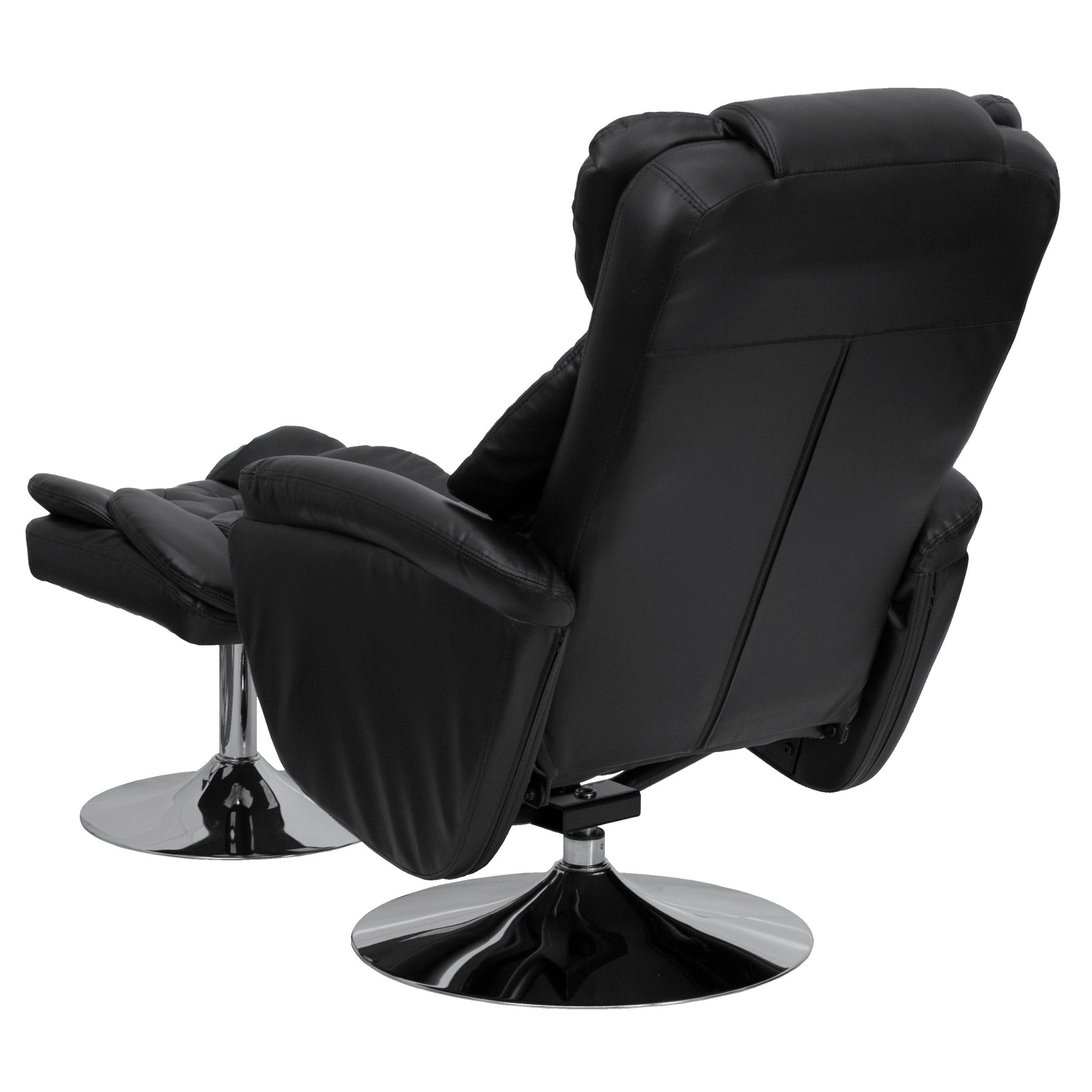 Wills Transitional Multi-Position Recliner and Ottoman with Chrome Base in Black Leather