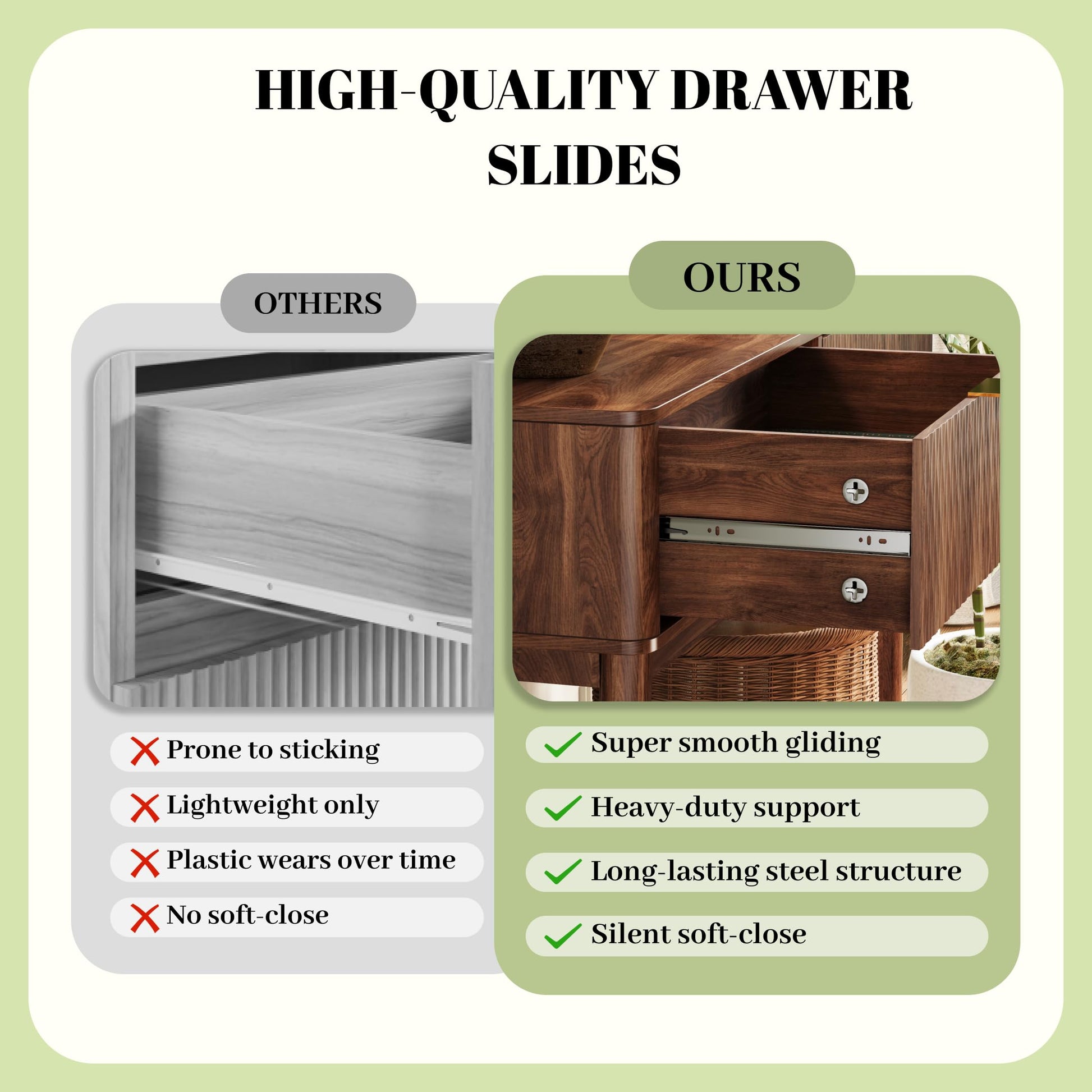 - Fluted Design: Distinctive fluted drawer fronts add retro elegance and visual texture