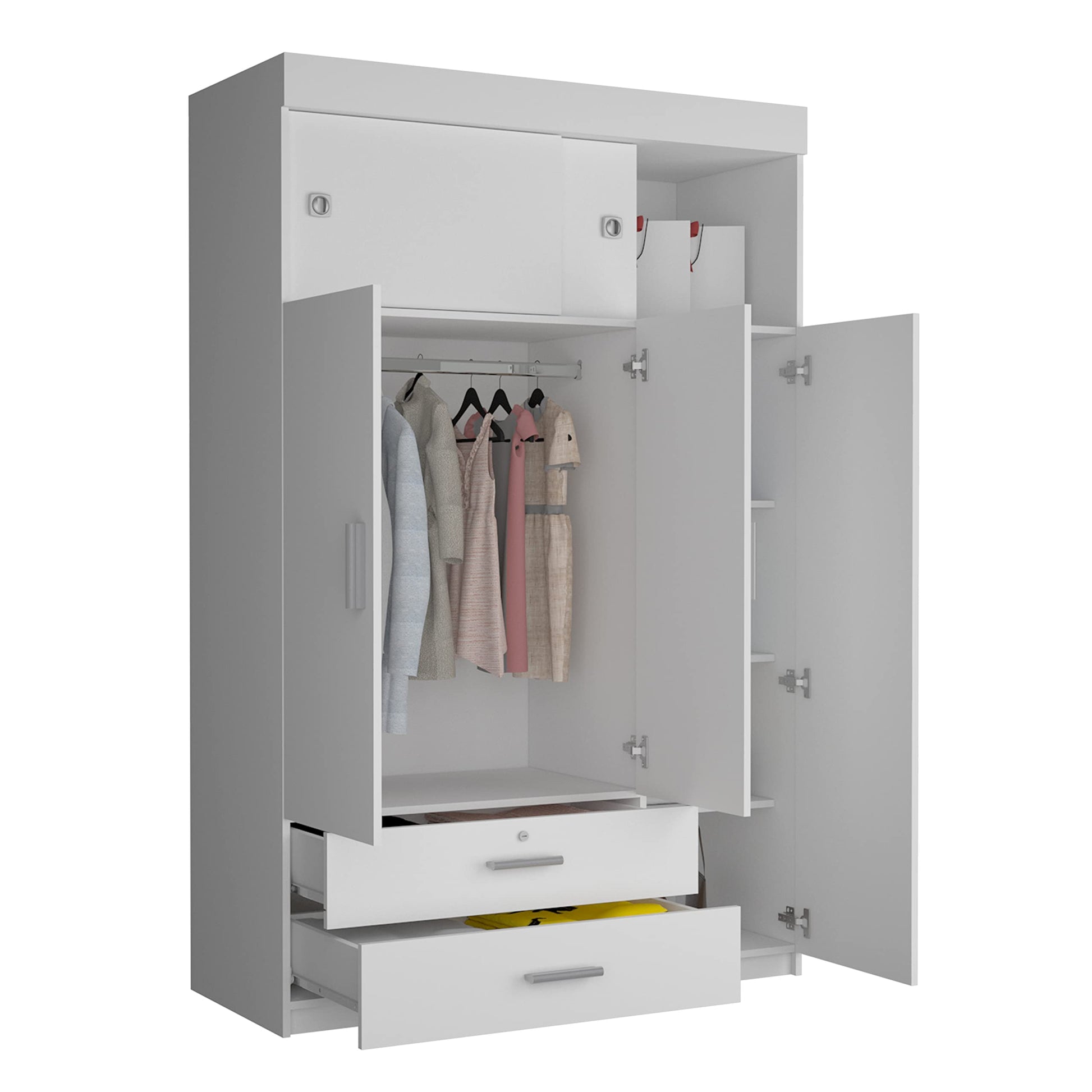 - Features: Featuring 2 drawers great fits for your undergarments or small accessories, 1 Door cabinet with hanging rod for those wrinkle-prone clothing like dresses, suits and coats that organized your cloathings. And a 2-door cabinet conceals four shelf great for shirts, bags, lotions, or perfumes.