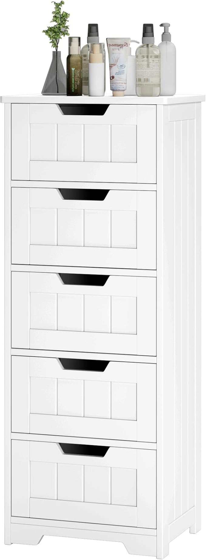 Bathroom Floor Cabinet, Free-Standing Storage Cabinet with 5 Drawers