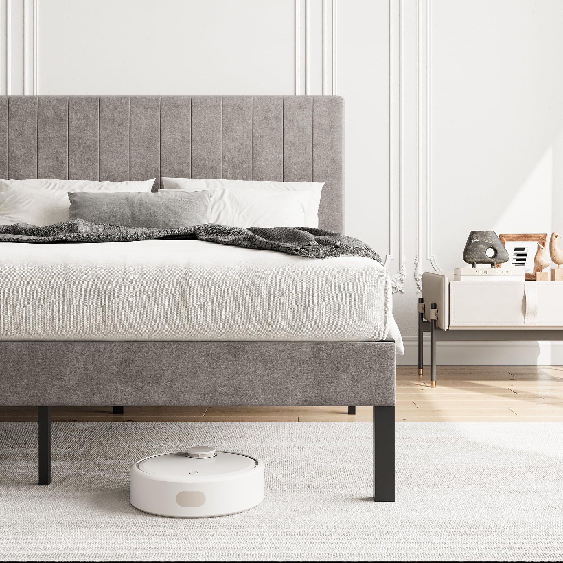 - The bed's headboard featuring a modern vertical channel design makes a statement in any bedroom space. And luxurious plush not only adds softness but also completes your contemporary aesthetic. Its foam-padded upholstery offers supportive comfort while relaxing.