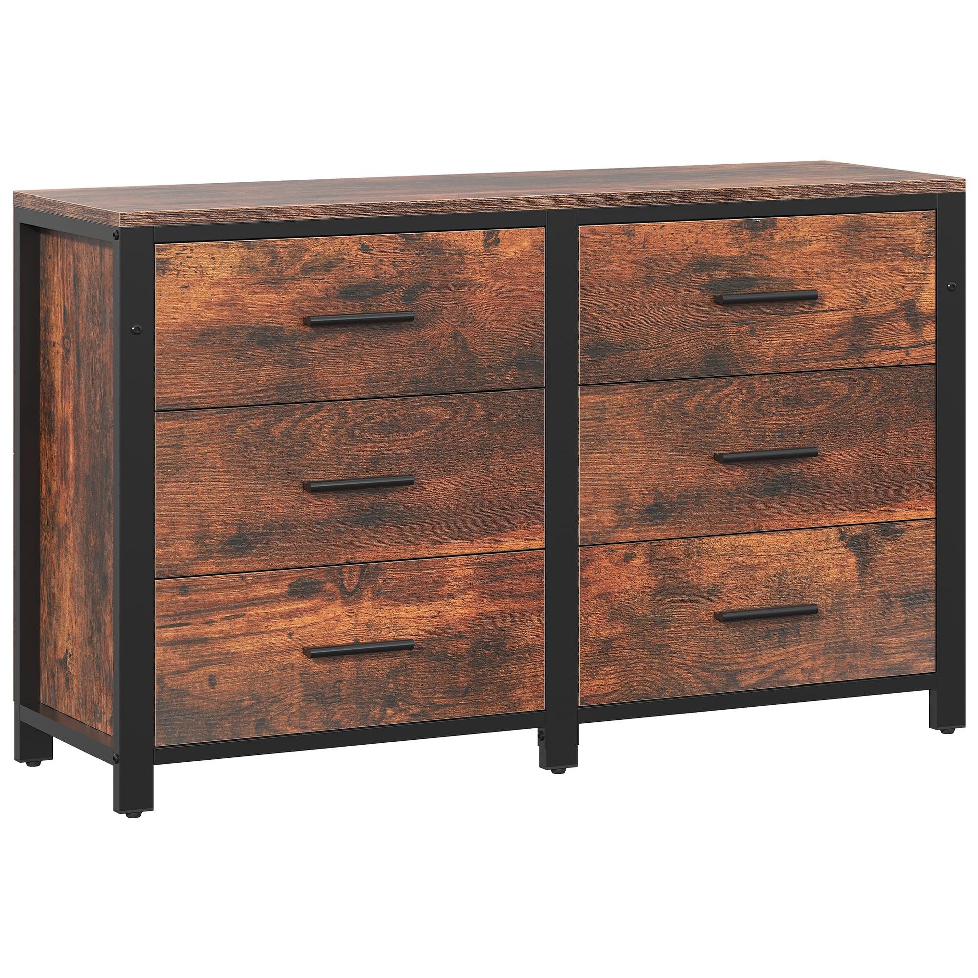 - The robust structure of our 6 Drawer Dresser unit is consolidated with a strong metal frame and 0.6-inch water-resistant wood-top that guarantee steady support and long-lasting service. To enhance safety, the unit is equipped with In addition to being used as a TV stand, this wooden cabinet can also be used as a Storage Dresser for bedroom, living room, entryway to organize clothes, socks, toys, accessories and more. Size at 47.2 "L x 15.7 "W, the wide wooden top can hold your table lamp, photos and books.