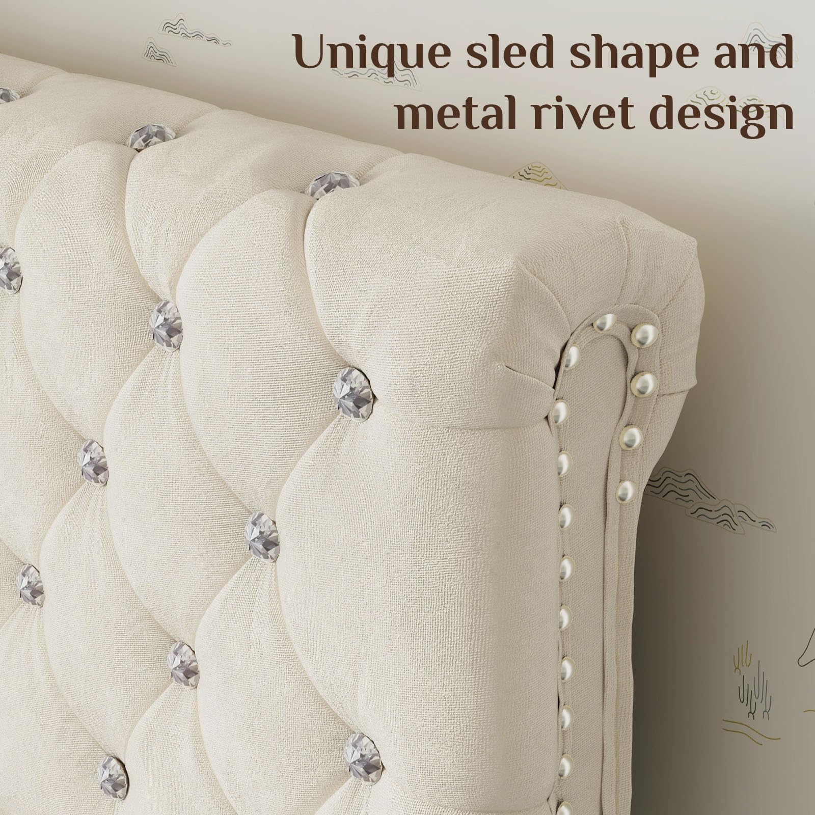 | Headboard Style | Diamond-tufted wingback, adjustable height |