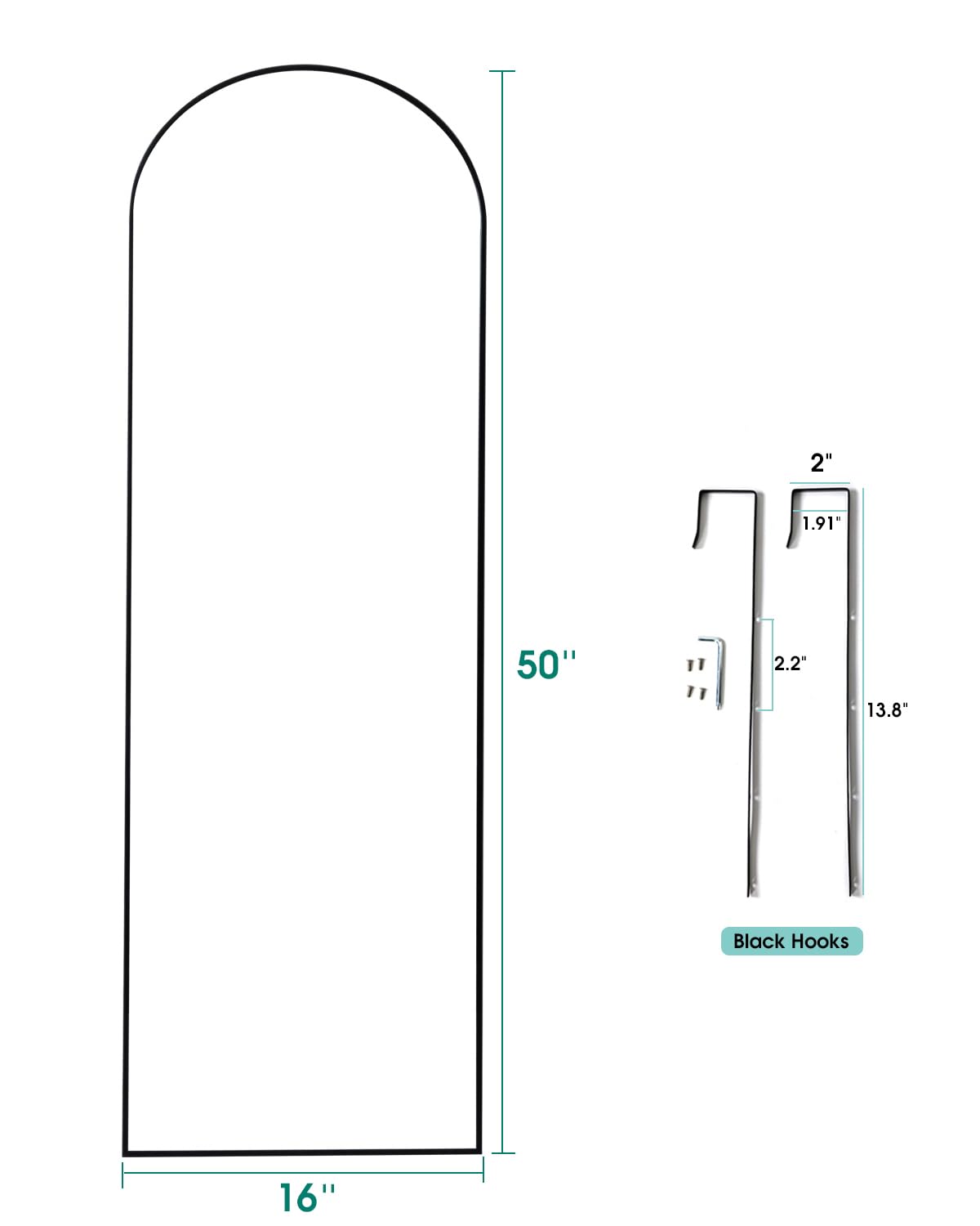 Full Length Arched Door Mirror - 16x50 Black Frame Wall Mount