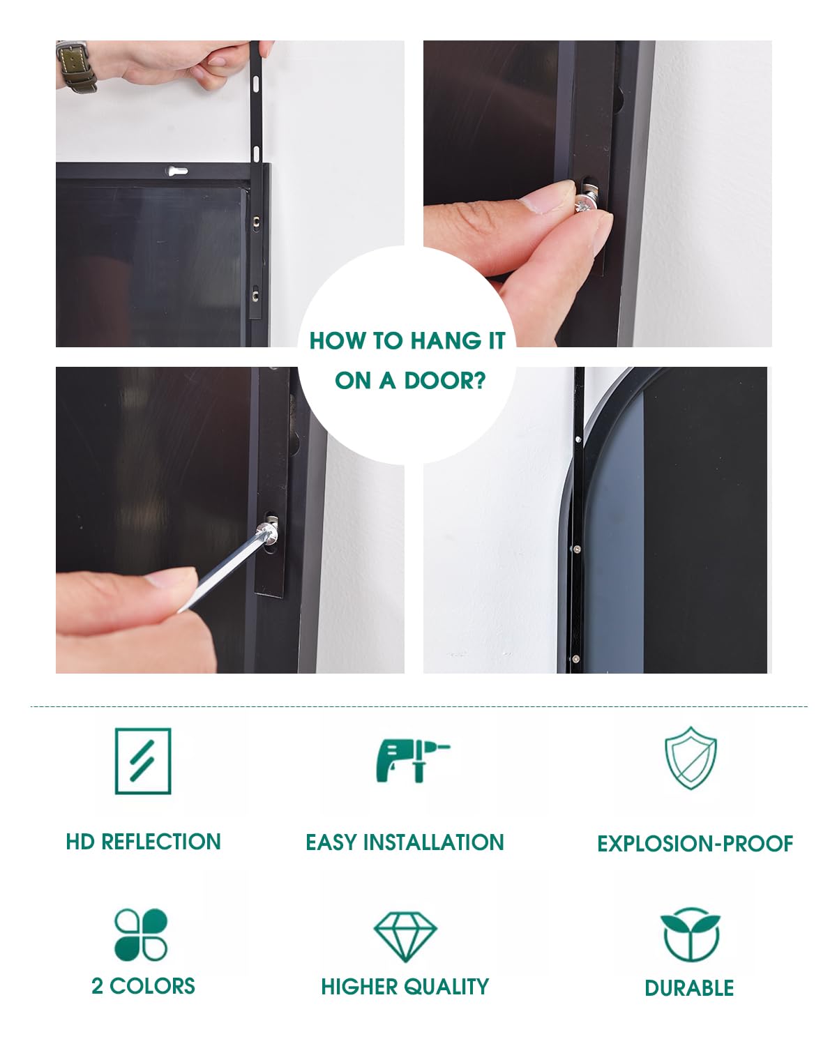Engineered for easy installation, this mirror features both over-the-door and wall-mount capabilities, giving you flexible placement options. The durable construction ensures long-lasting performance, while the distortion-free glass delivers crystal-clear reflections every time.
