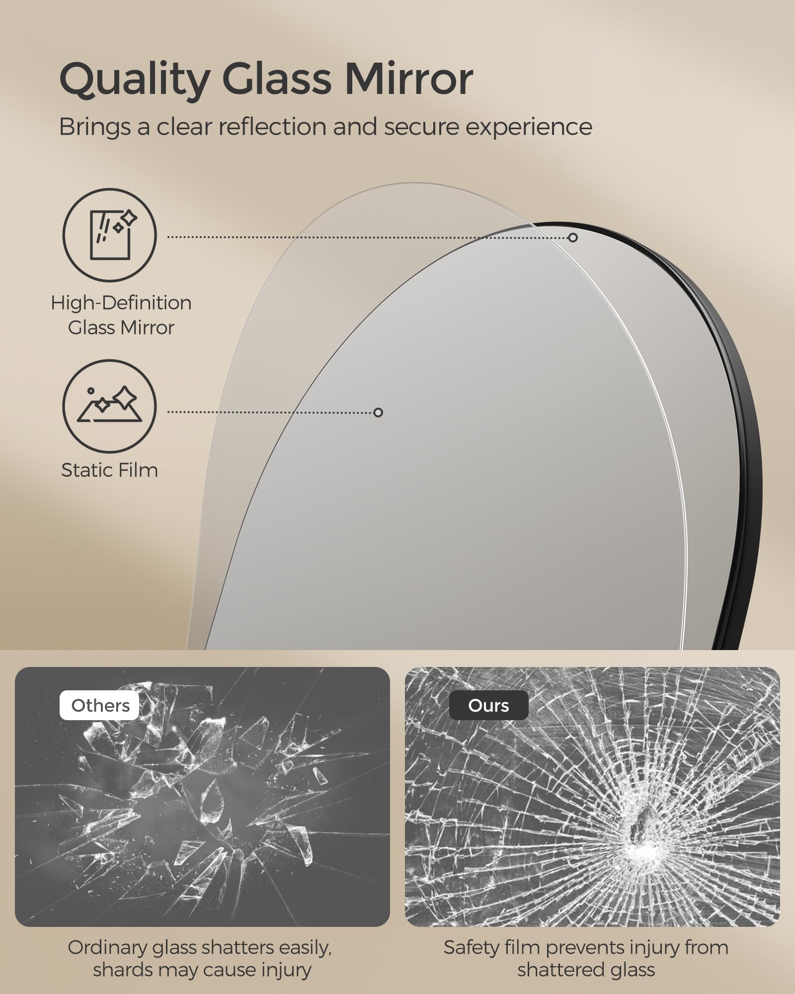 This elegant floor mirror is perfect for bedrooms, living rooms, walk-in closets, dressing rooms, and entryways. The freestanding design means easy placement anywhere without drilling or wall damage.