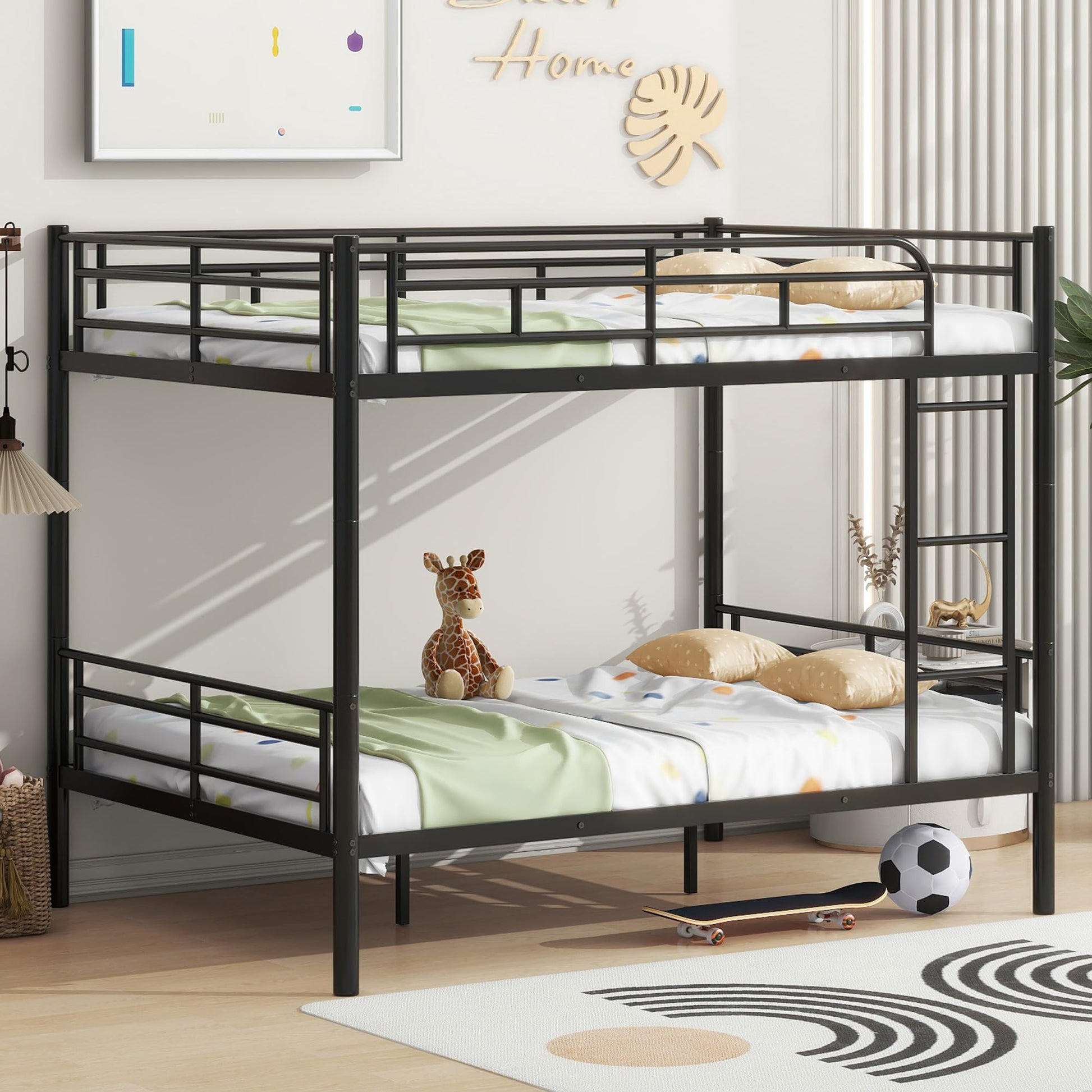 Beds with Ladder and high Guardrail, Convertible Bed Frame, Heavy Duty Metal Slat Full