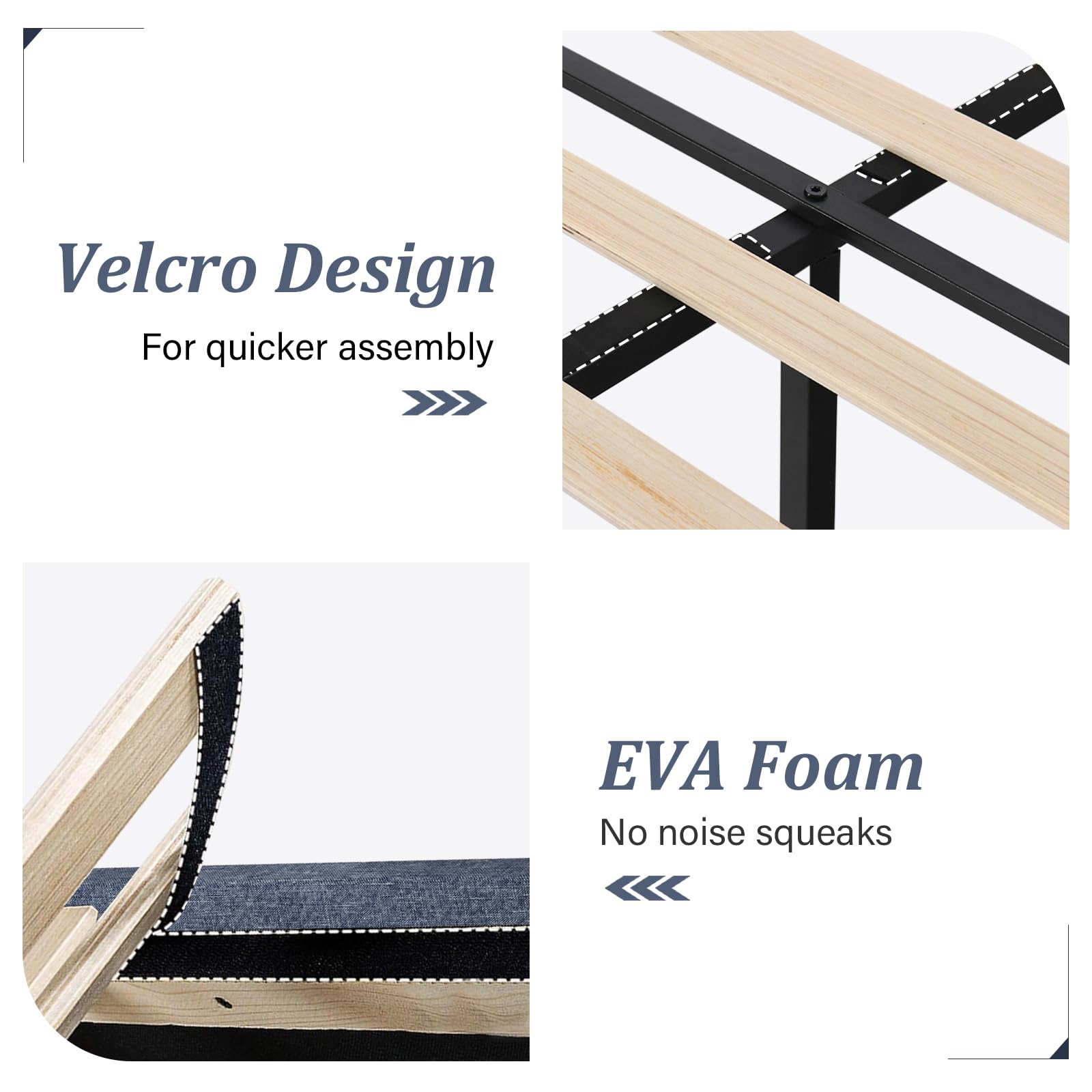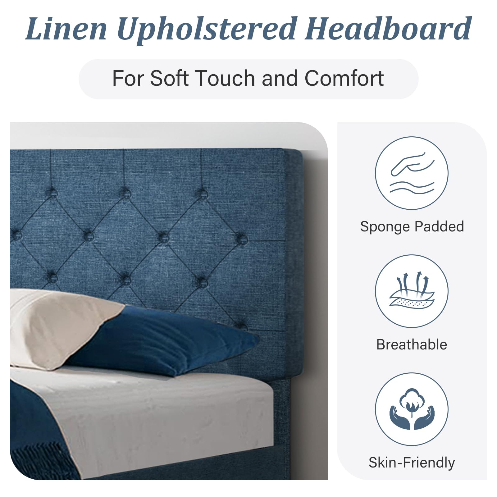 - Simple and Comfortable—The full bed frame with headboard is made of high-quality linen fabric with built-in high-resilience foam for a comfortable touch. The headboard's clean, minimalist lines and pulls will complement any bedroom style perfectly.