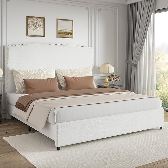 - 56.3" Tall Bed Frame: No more leaning against cold walls! Our upholstered bed frame features a tall headboard wrapped in soft boucle fabric, giving you plush back support while reading or watching movies