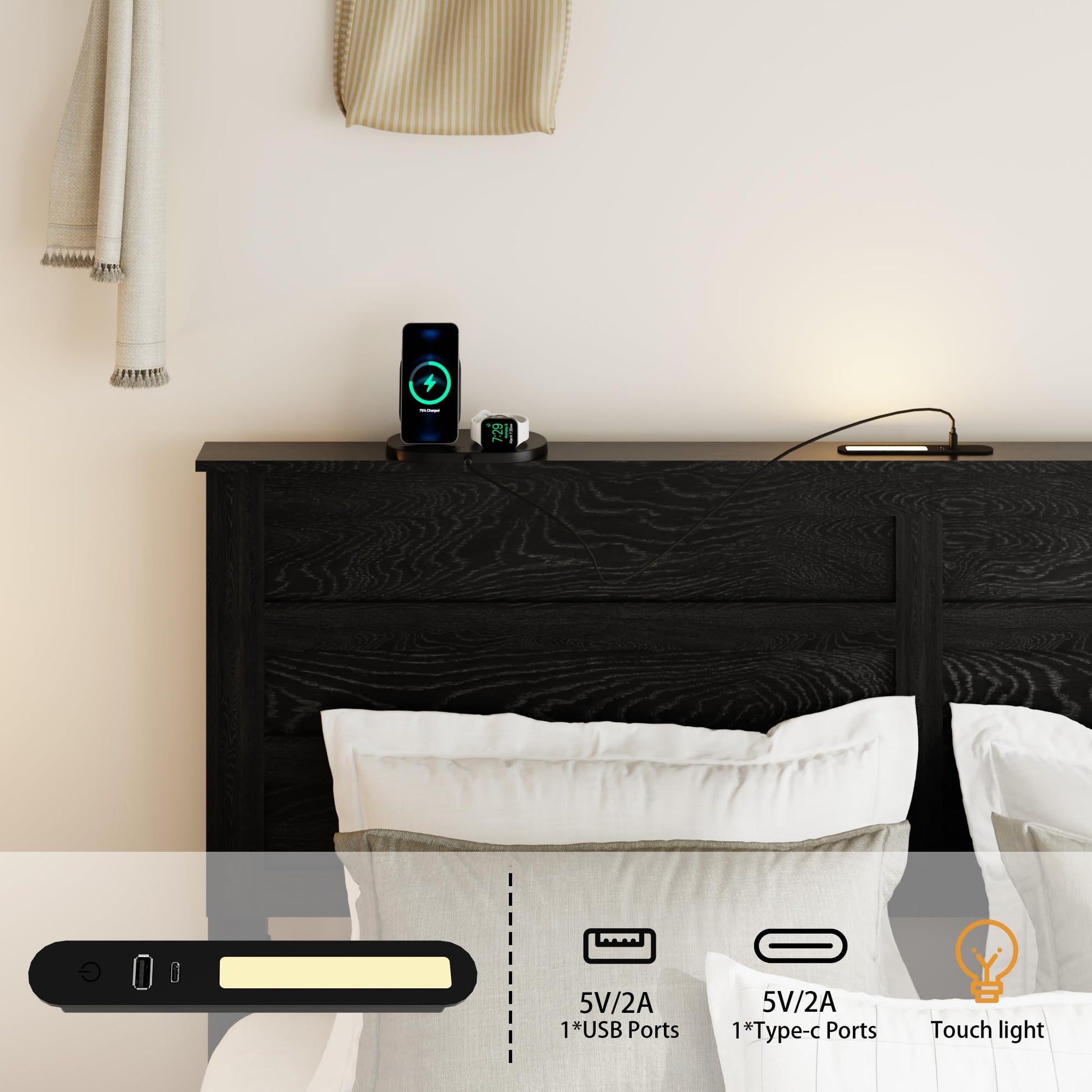 Crafted with attention to detail, this bed frame features a sophisticated black finish that enhances any bedroom aesthetic, from contemporary minimalist to warm rustic charm.