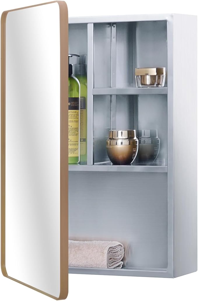 Stainless Steel Medicine Mirror Cabinet for Bathroom with Golden Framed Door