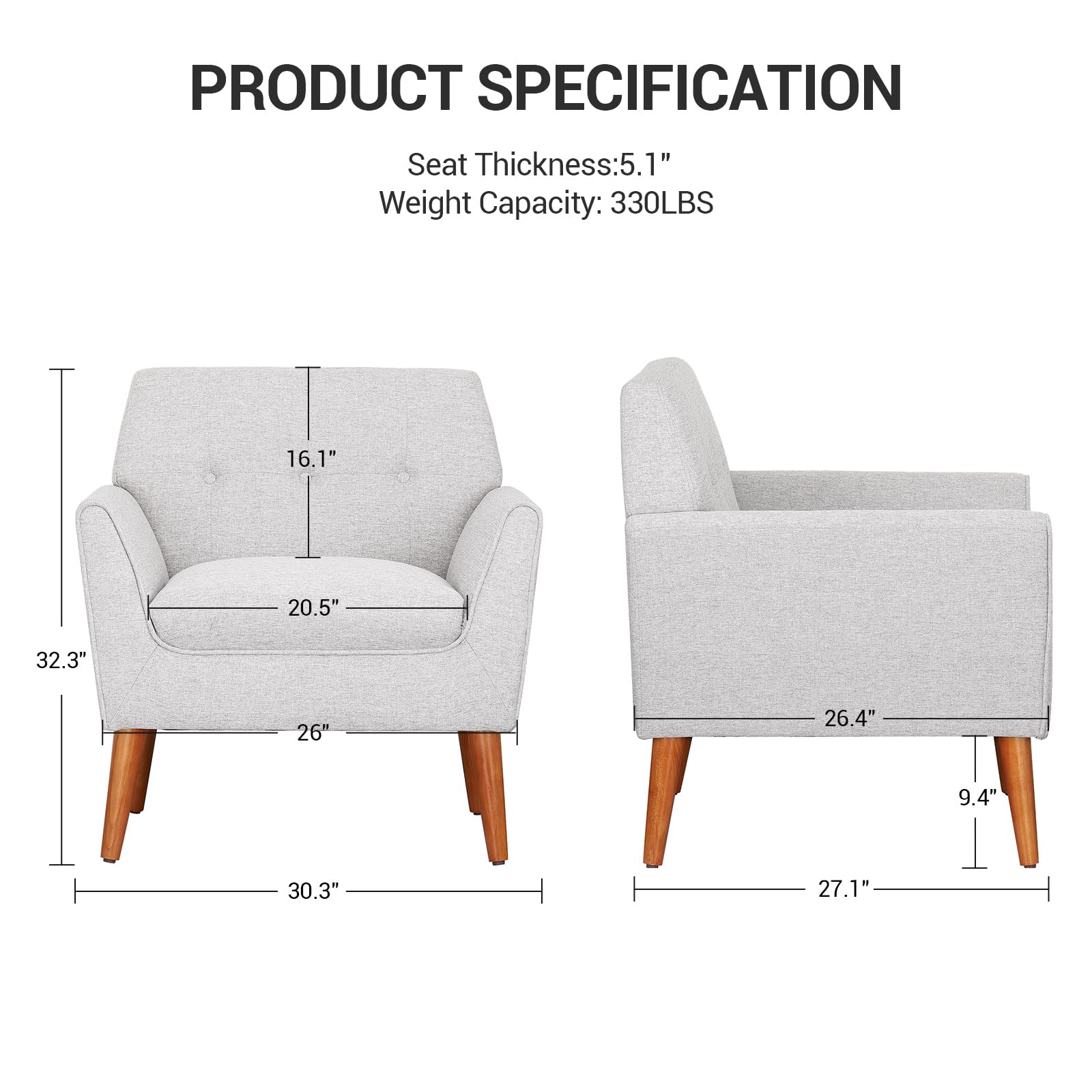 - The mid century modern chair featured tufted button backrest, designed with simple lines, adds an exquisite visual element to your living room, bedroom, small apartment, office,serving as a perfect arm chair to your space