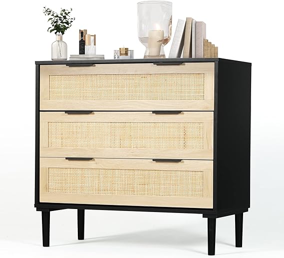 - Stylish Simplicity The 6 double drawer adds a classic rattan drawer element to the simple monochromatic wood panel, adding a certain sense of interest and premium beauty to this product. Various decorative styles are compatible with this modern and minimalist rattan six-drawer chest. Create a minimalist but not rigid living environment for your home.